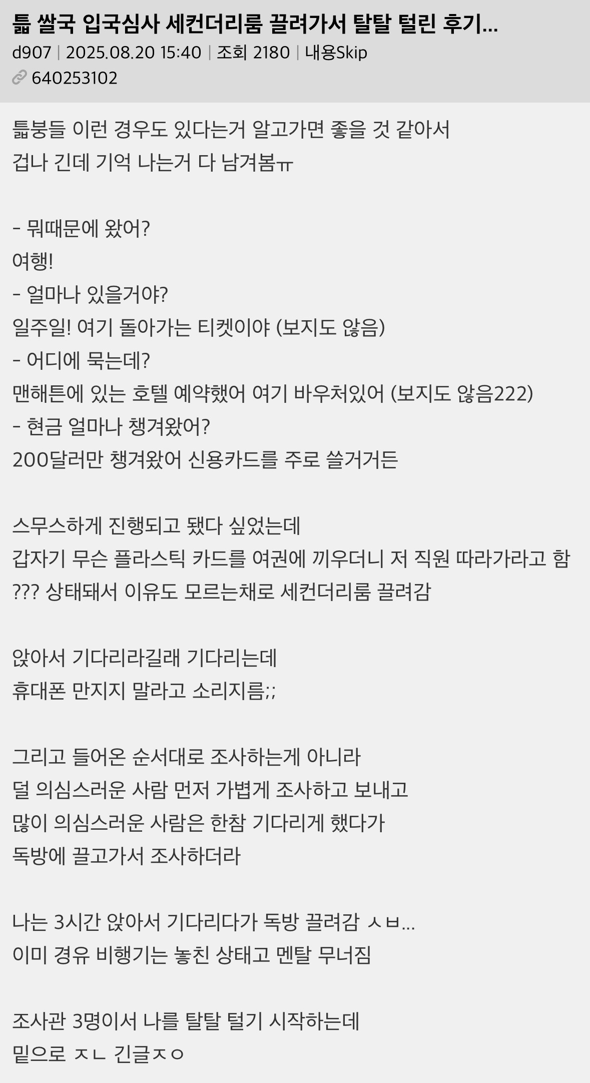 작성시간 25.12.02 휴..난 13시간 갇혀있던적..lax..