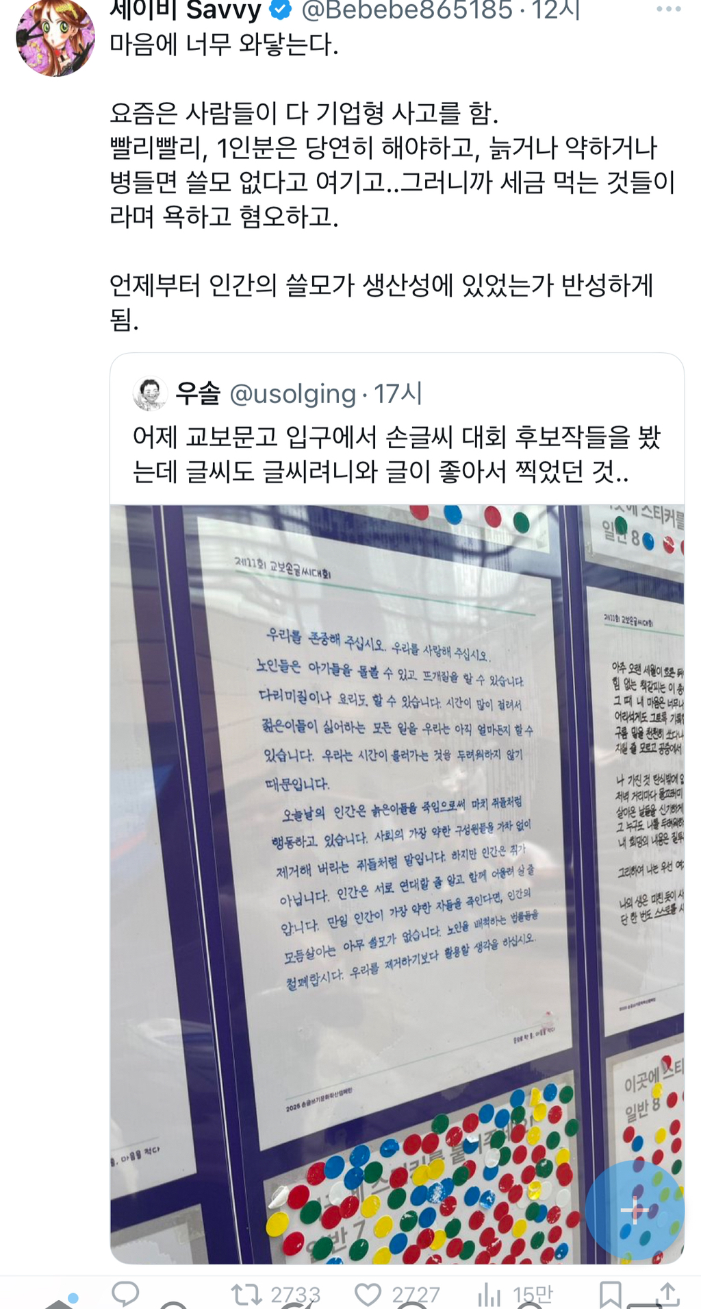 작성자R=VD특수교사 된다 작성시간 25.08.21 맞는 말이다....함께 살아가야해ㅜ