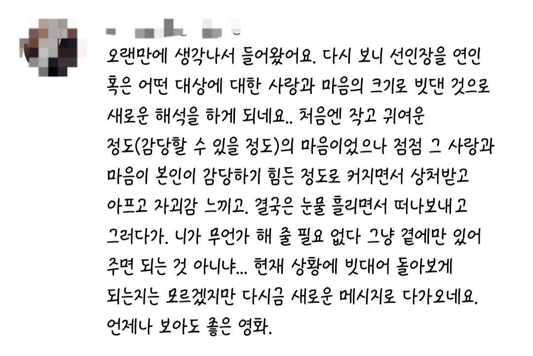 완벽한 영화라고 생각하기에 꼭 영상으로 봤으면..💦