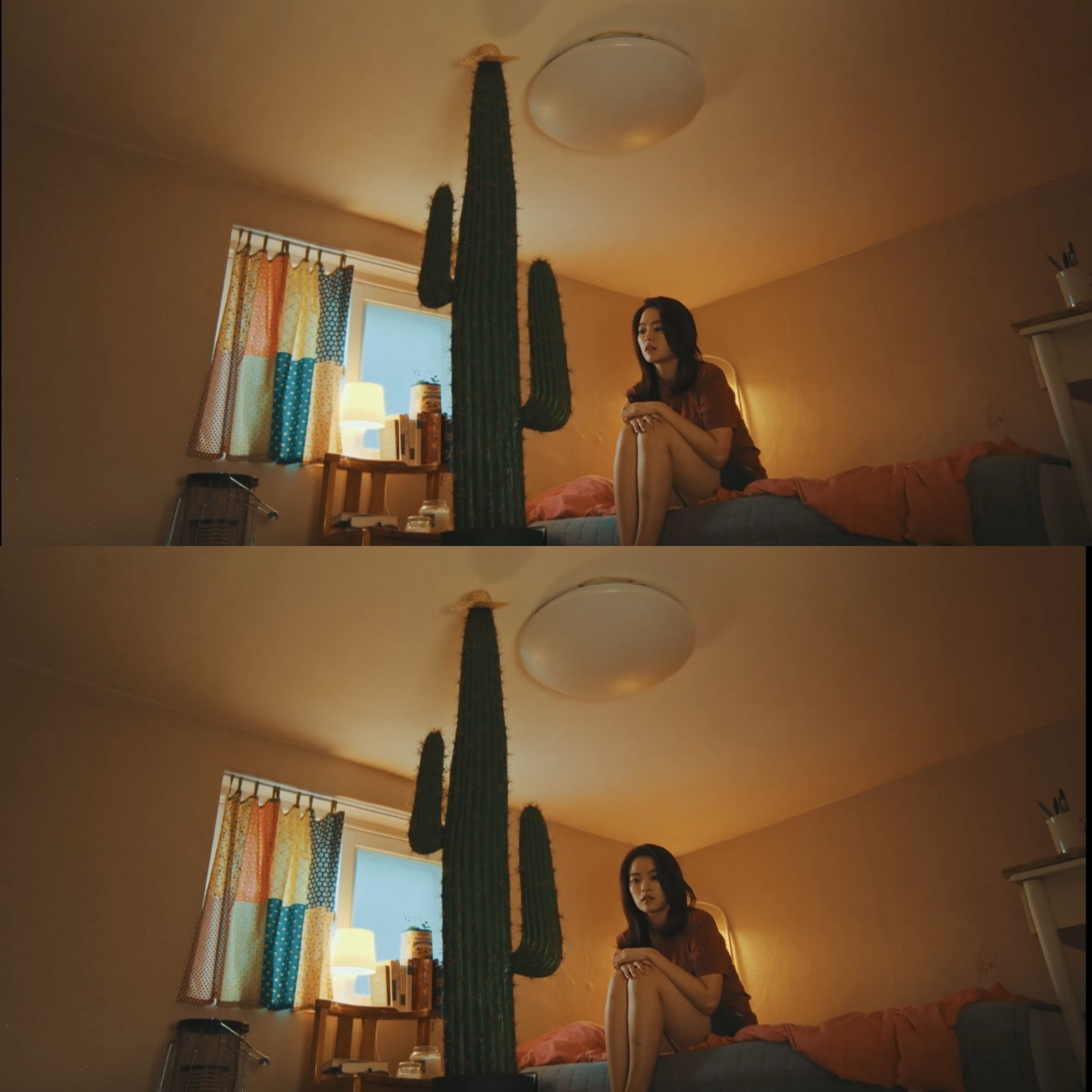 그리고 선인장을 들고 귀여움에 어쩔 줄 모르는 우희