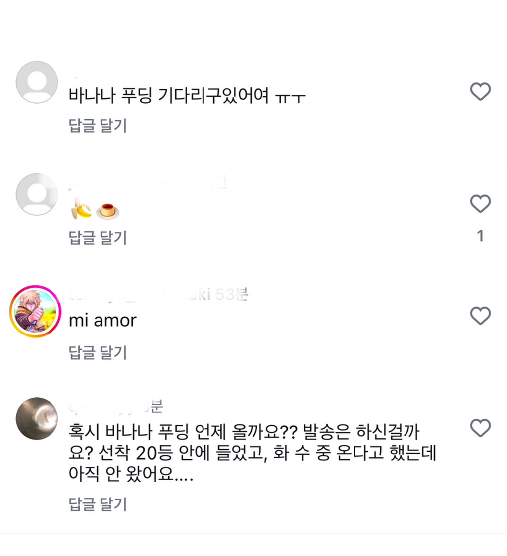 [흥미돋]한서희의 사라진 바나나푸딩 작성자éclair|작성시간25.08.28|조회수140,262 목록 댓글 299 글자크기 작게가 글자크기 크게가 출처: 여성시대 éclair그 와중에 강남주 댓글🍌🍮 1개당 5만원3.5에 산 여시들도 있는거 같은데내가 본건 블로그에 5만원이었음. 다음검색 현재 게시글 추가 기능 열기 북마크 공유하기 신고 센터로 신고 댓글 댓글 299 댓글쓰기 답글쓰기 댓글 리스트 작성자식스타임즈 | 작성시간 25.08.30 저걸왜사노 삭제된 댓글입니다. 답댓글 작성자노으을 | 작성시간 25.09.03 사람이름 아냐? 작성자짱럭키핑 | 작성시간 25.09.07 왜 사?? 작성자난카이지진기원하바바 | 작성시간 25.09.09 5나 3.5나 저걸 사는 지능이ㅋㅋㅋㅋㅋㅋ 댓글 전체보기