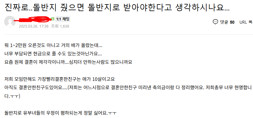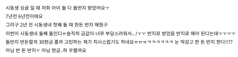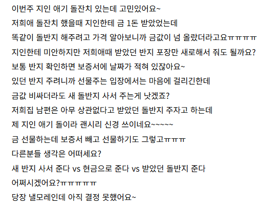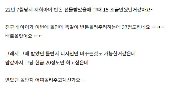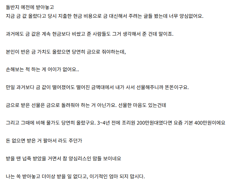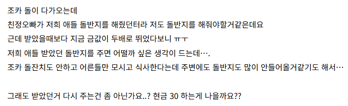 지 자식 축하해서 좋은 맘으로 돌반지 준것도 막상 지들이 돌려줄 때 되면 아까워서 벌벌ㅋㅋㅋ