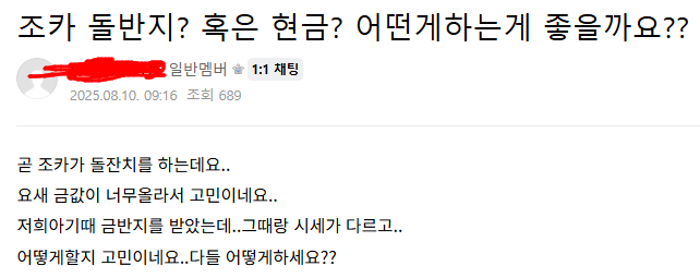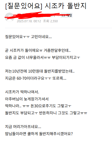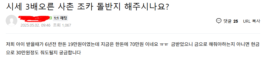 작성시간 25.09.05 그대로 줘야지 받은것도 오른건데 ;