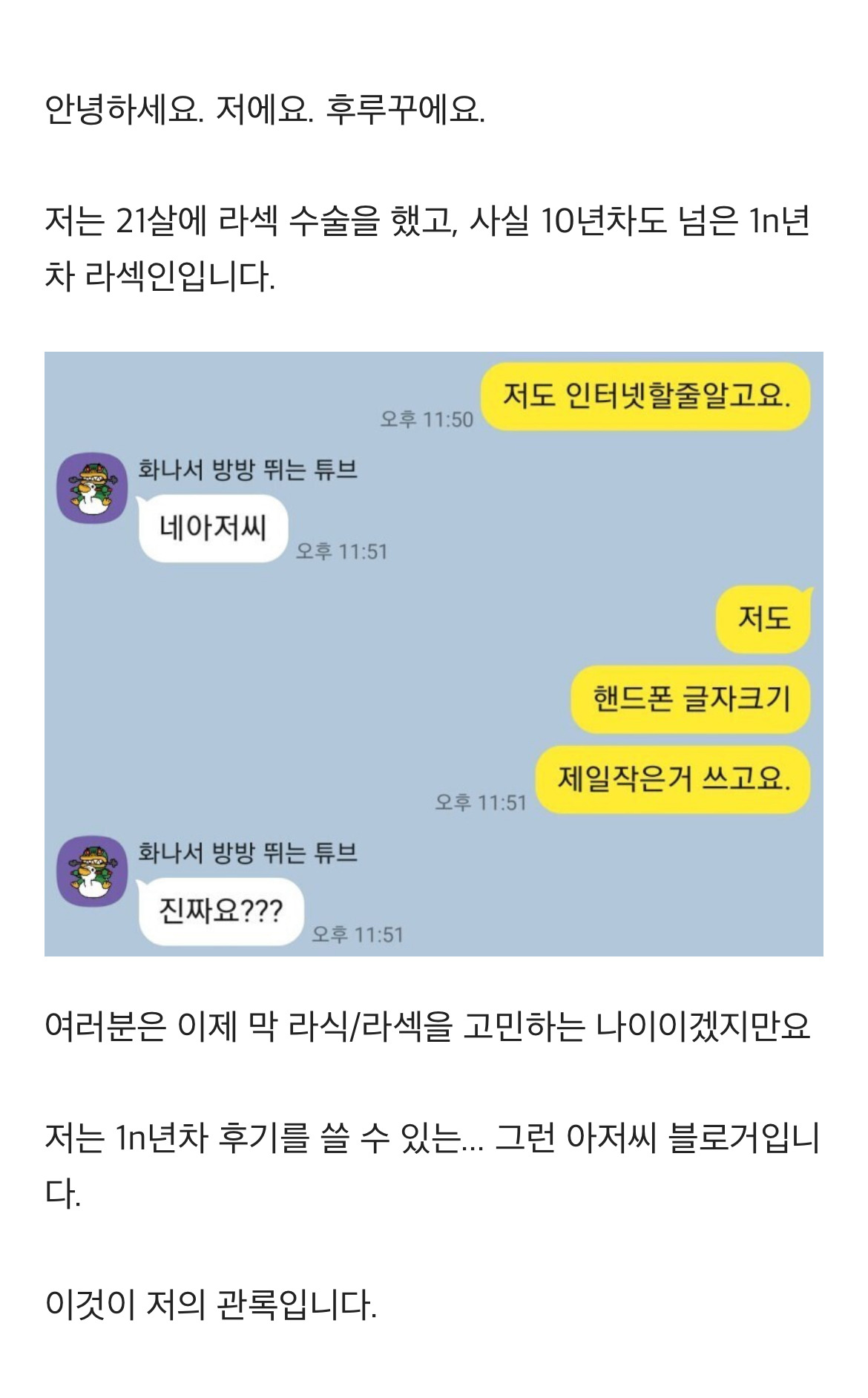 [흥미돋]어느 블로거의 오싹한 라섹 10년차 후기..jpg 작성자RKID|작성시간25.09.04|조회수17,457 목록 댓글 38 글자크기 작게가 글자크기 크게가 출처: https://m.blog.naver.com/furuku_/222861920748 다음검색 현재 게시글 추가 기능 열기 북마크 공유하기 신고 센터로 신고 댓글 댓글 38 댓글쓰기 답글쓰기 댓글 리스트 작성자지금몇시임 | 작성시간 25.09.04 ㅋㅋㅋㅋㅋㅋ 풍자오지네 ㅋㅋㅋㅋ 작성자쟝포니 | 작성시간 25.09.04 이제는 이 글 보고 웃을 수가 없어.. 정확히 저 부작용으로 고생 중.. 후루꾸는 운이 좋은 케이스.. 작성자하니로마트 | 작성시간 25.09.04 아 글 개웃기네 진짜 ㅠㅠㅋㅋㅋㅋㅋ 작성자__seung__h | 작성시간 25.09.04 후루꾸님 지금도 파워블로거임ㅋㅋㅋㅋㅋㅋㅋㅋ 작성자긍정적으로생각하고웃으며살자 | 작성시간 25.09.05 아진짜웃기넼ㅋㅋㅋㅋ 댓글 전체보기