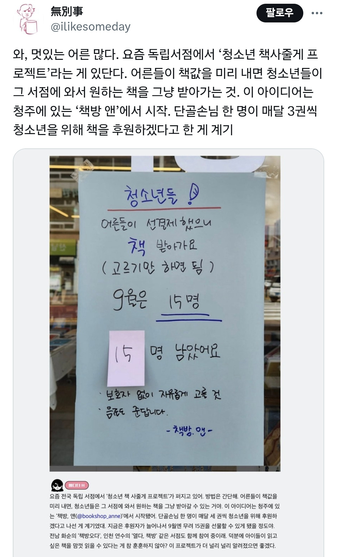 작성시간 25.09.05 여성영화제에서도 비슷한거 하더라 티켓값 대신 내주기
