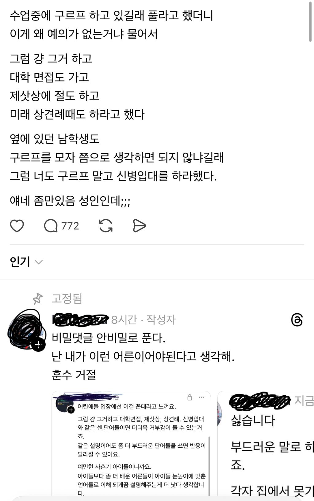 작성자먼지햄톨산신령 작성시간 25.09.13 요즘 애들이 많이 하니까 문제없다는 논리는...ㅋㅋㅋ