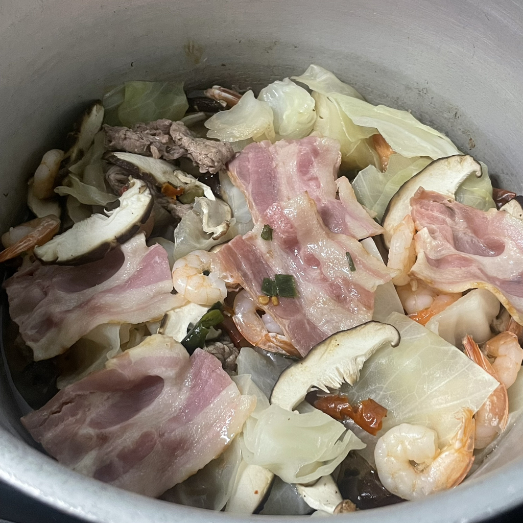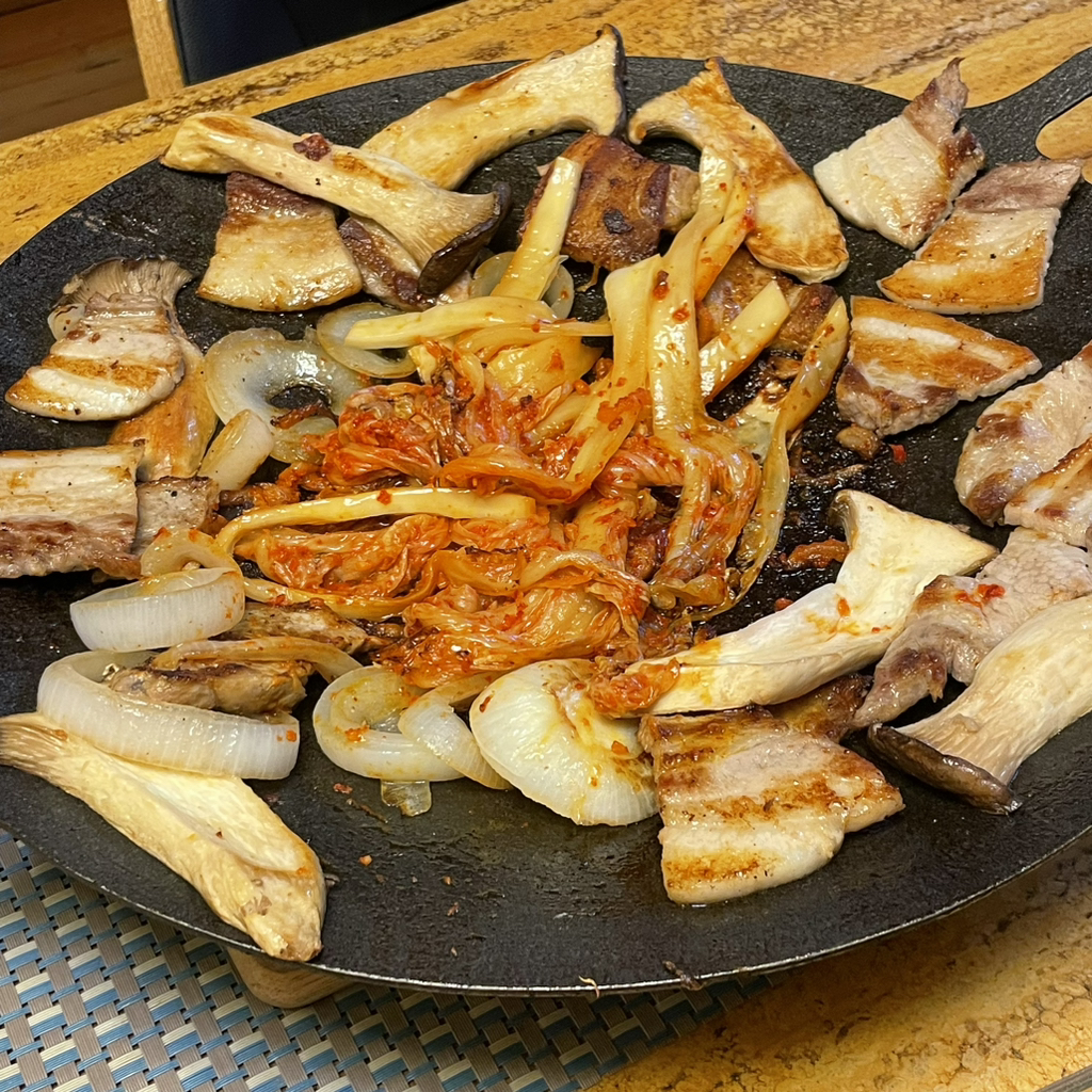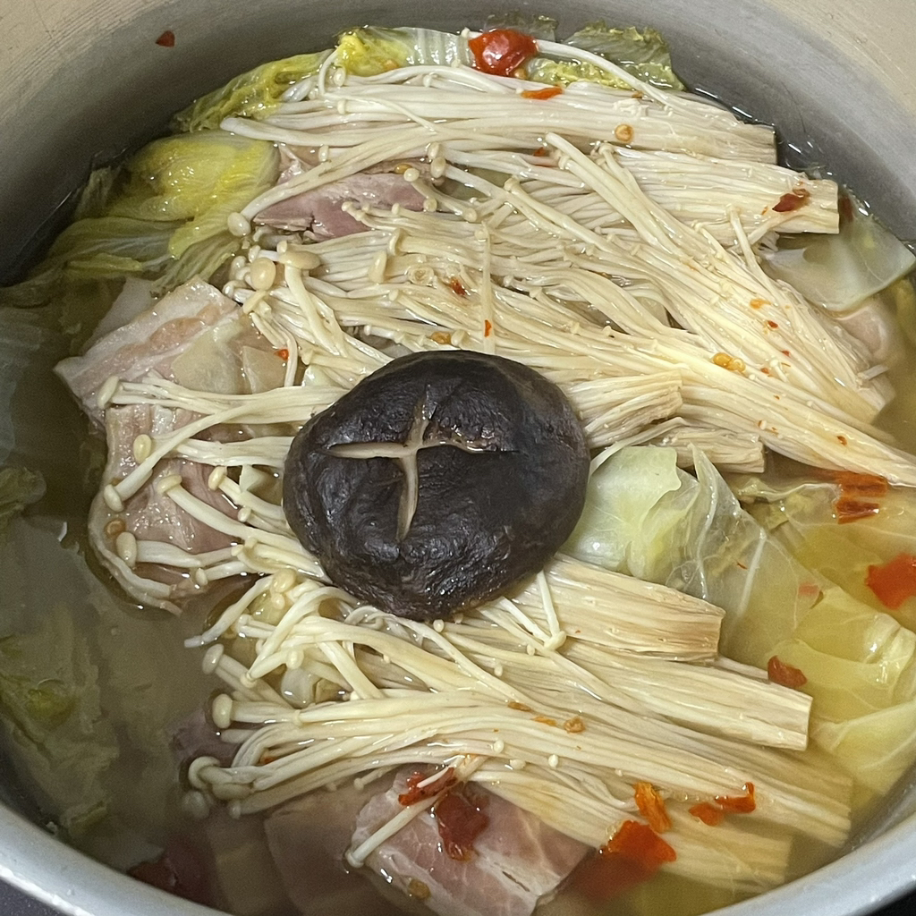 양배추 숙수 표고버섯 팽이버섯 불고기 베이컨 차돌박이 우삼겹 냉동불고기 칵테일새우 등등...