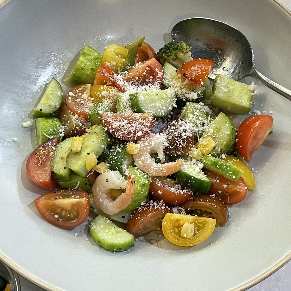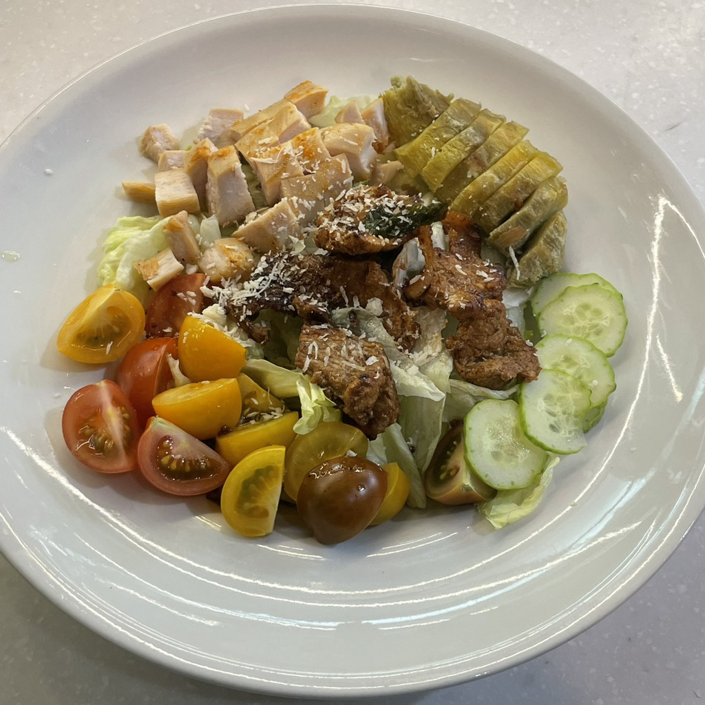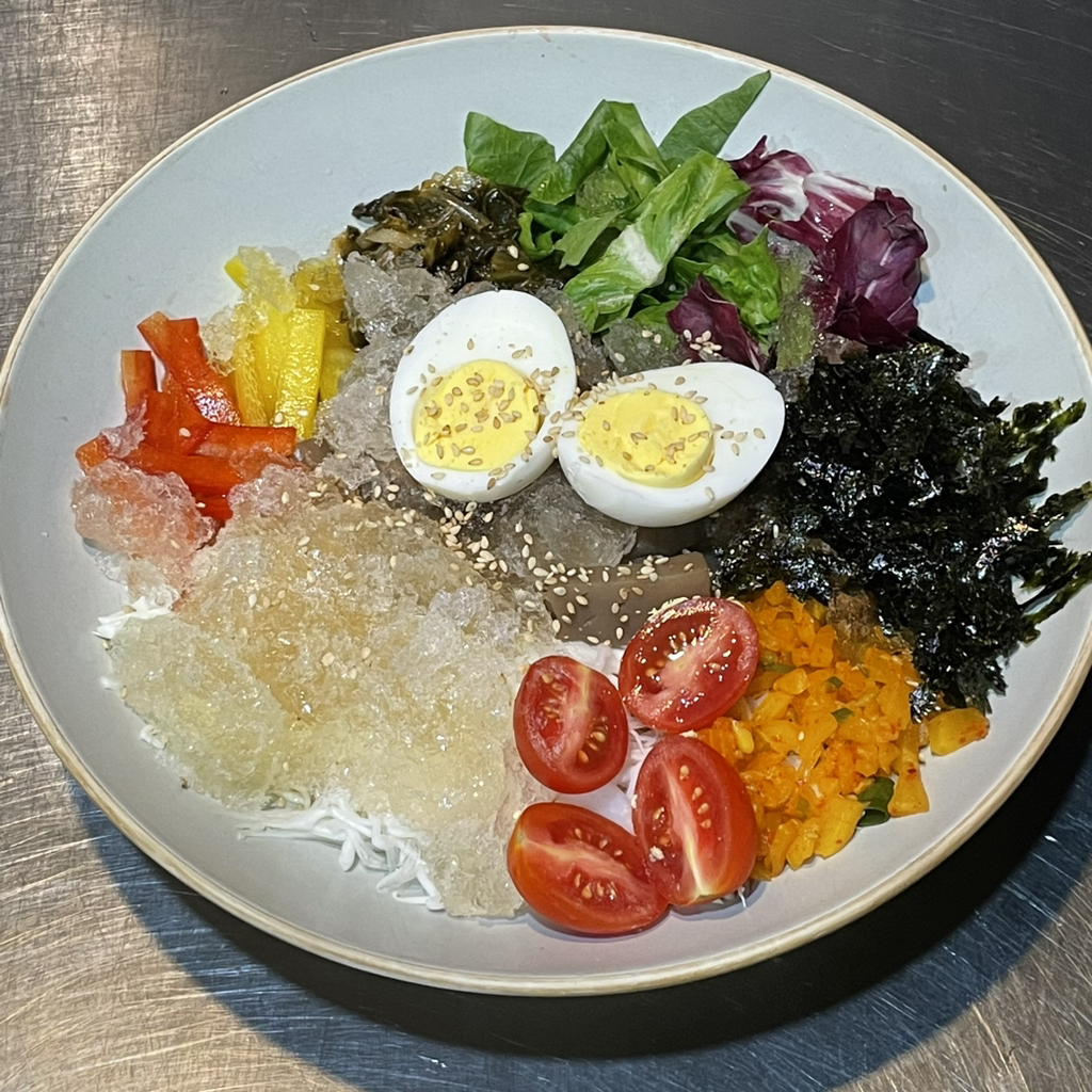 그리스식 여름샐러드에다가 엄마가 한 잡채 인데 면 빼고ㅋㅋ