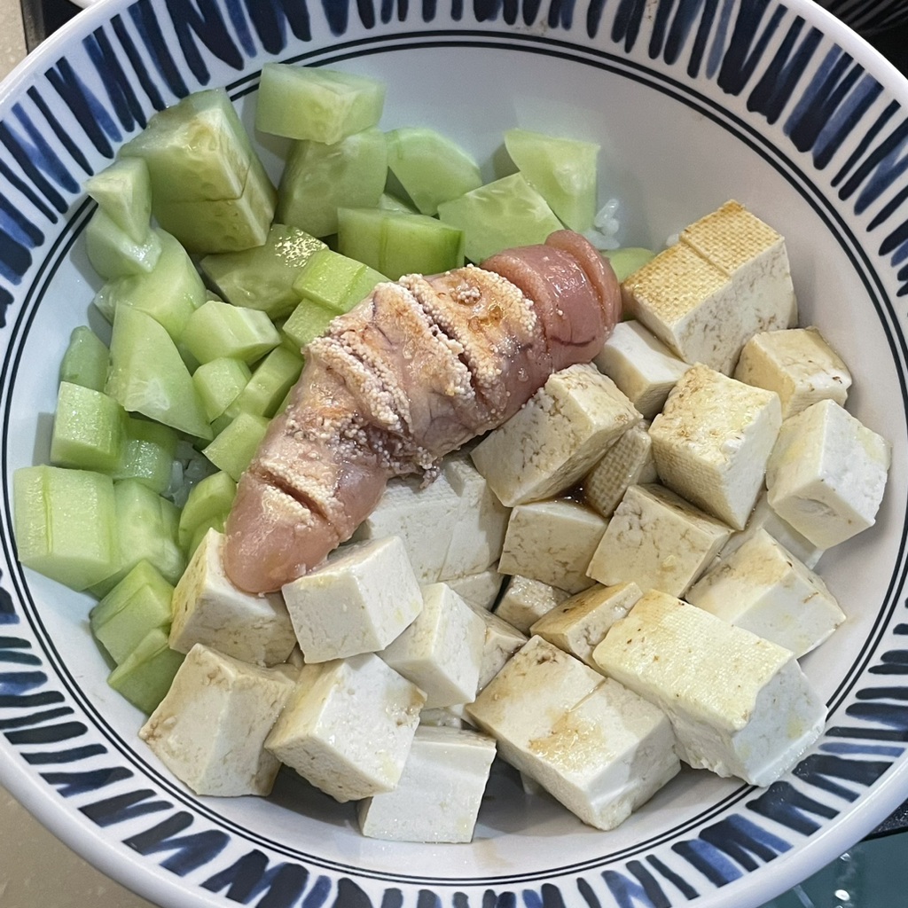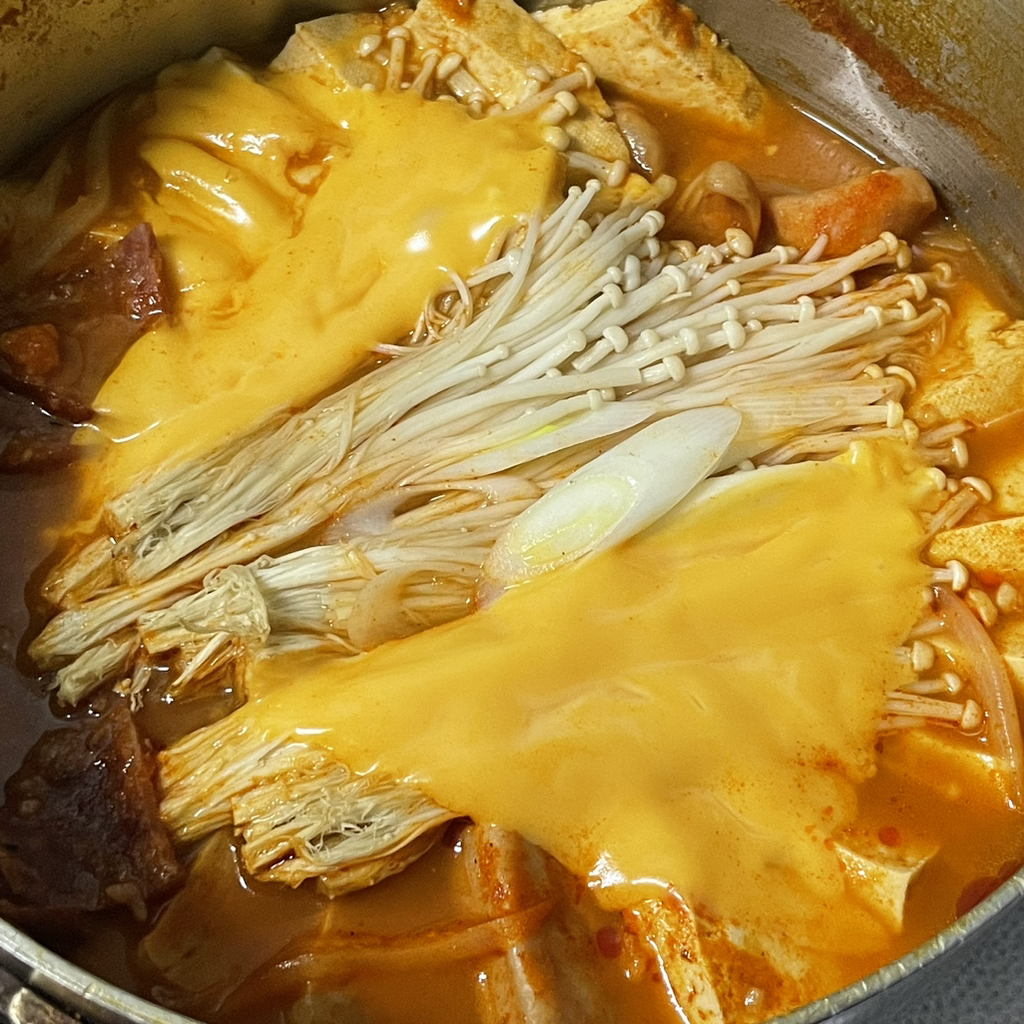 햄+소세지+베이컨+두부/순두부+팽이버섯+컵누들 면만 빼서+치즈
