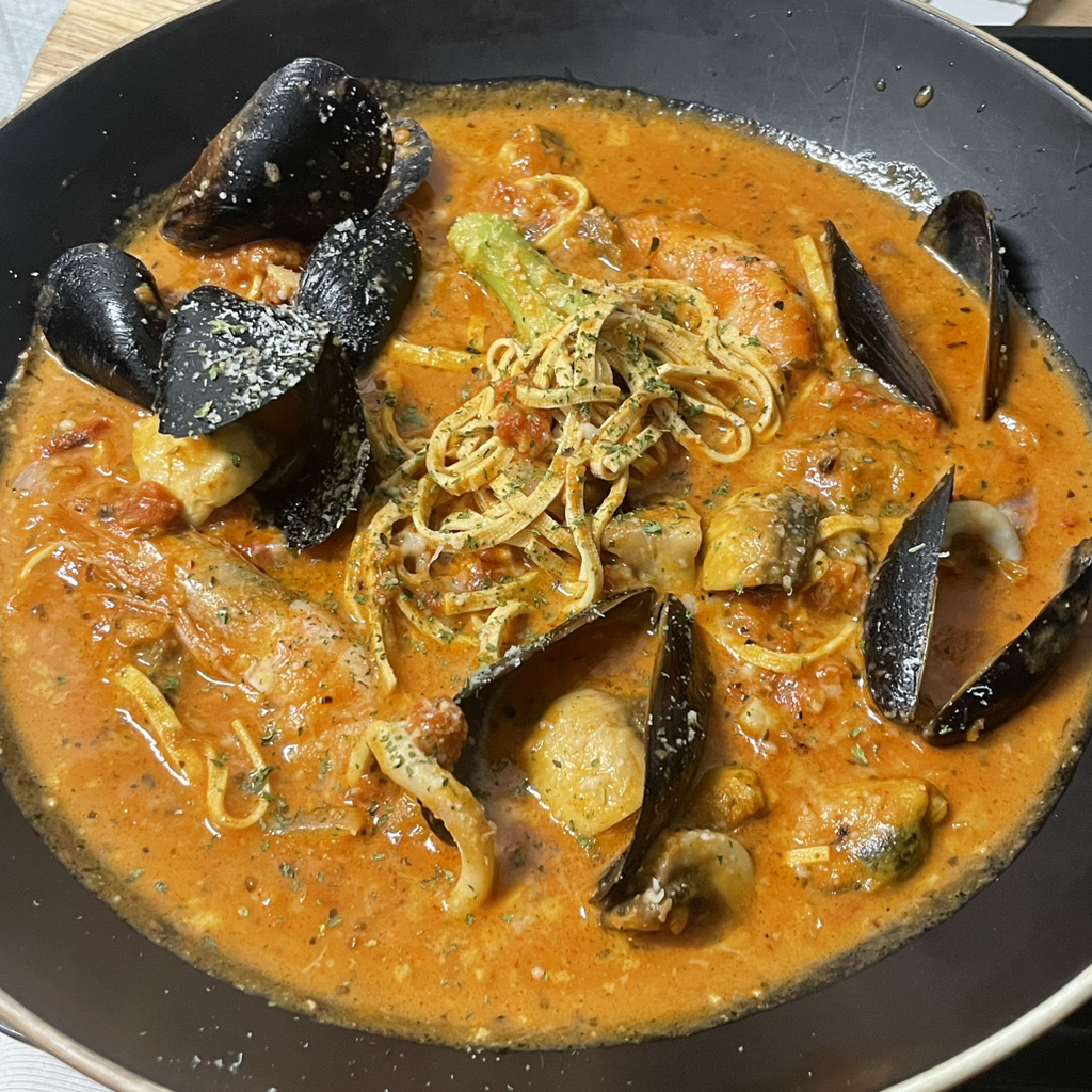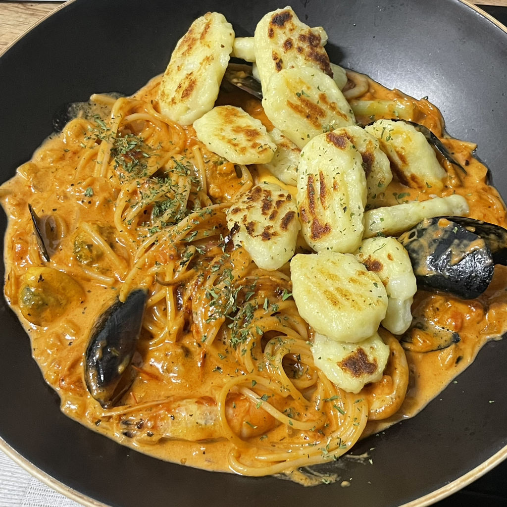 이건 해산물로제소스에 파스타면조금+감자뇨끼