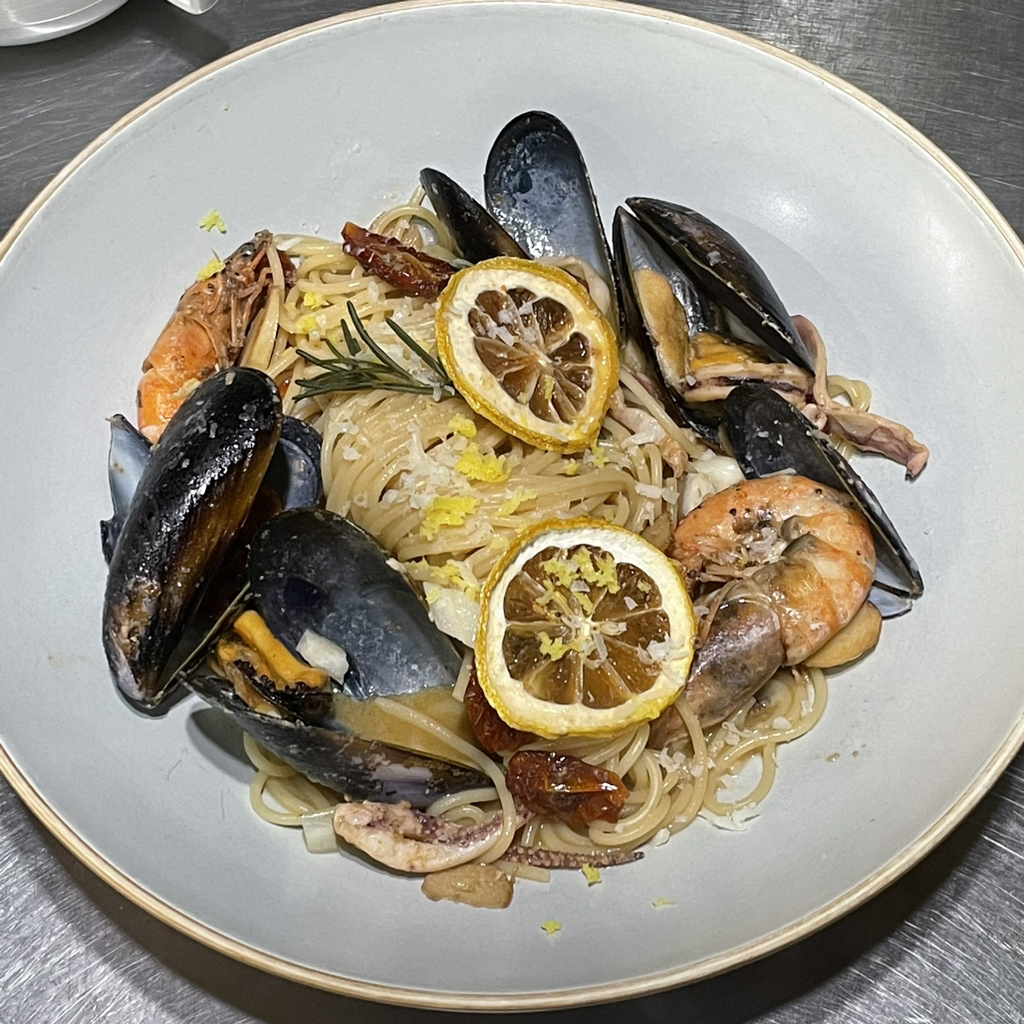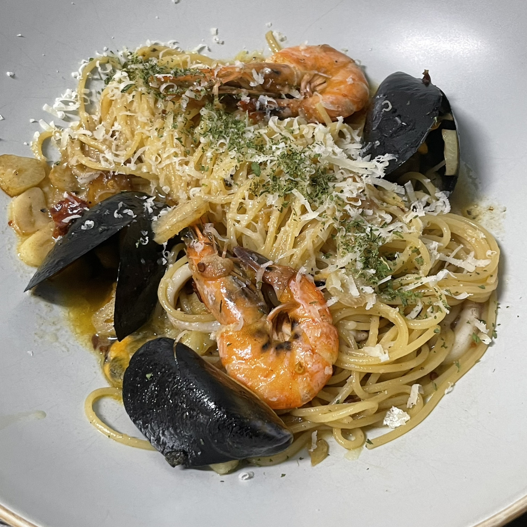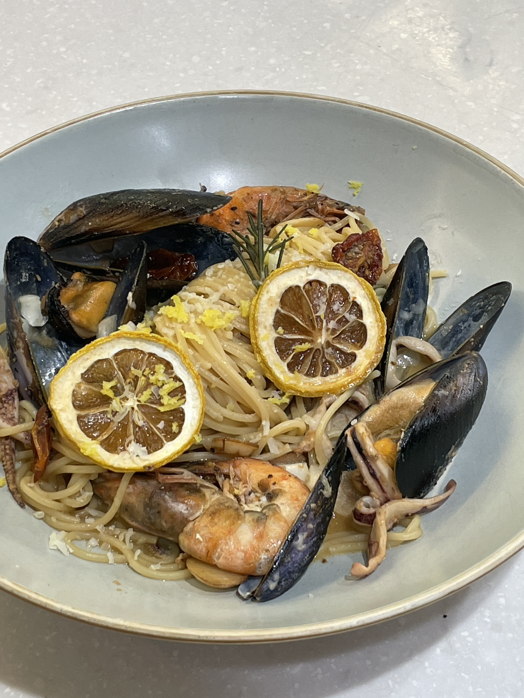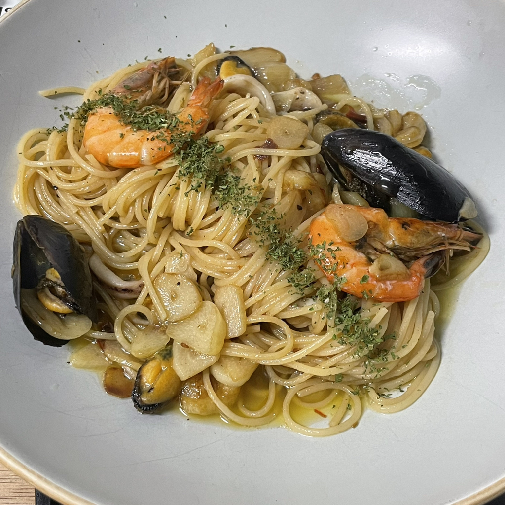 pasta al limone 느낌으로 버터만 넣고 간단히 하려다가 단백질보충(?)이 필요해서 해산물 넣고 한번 만들어봤음