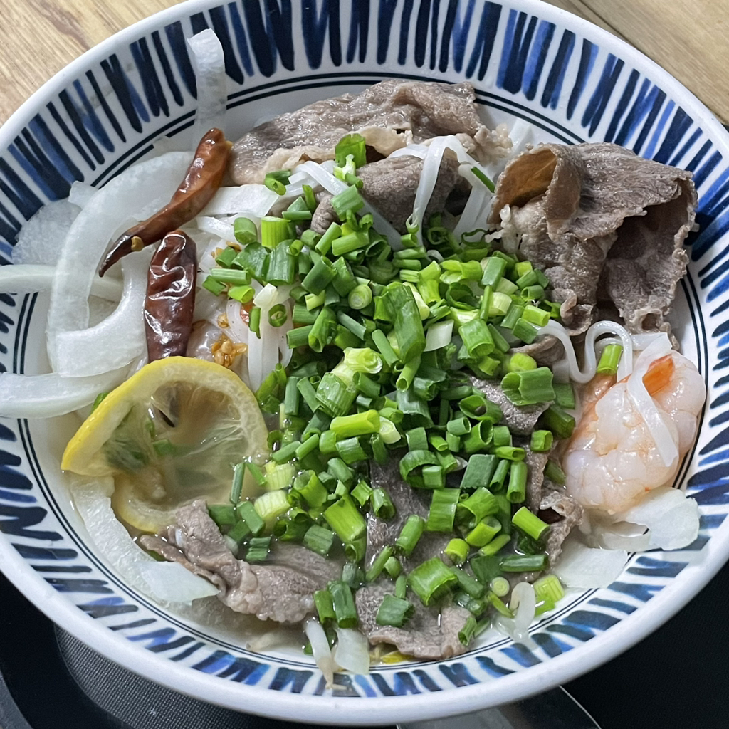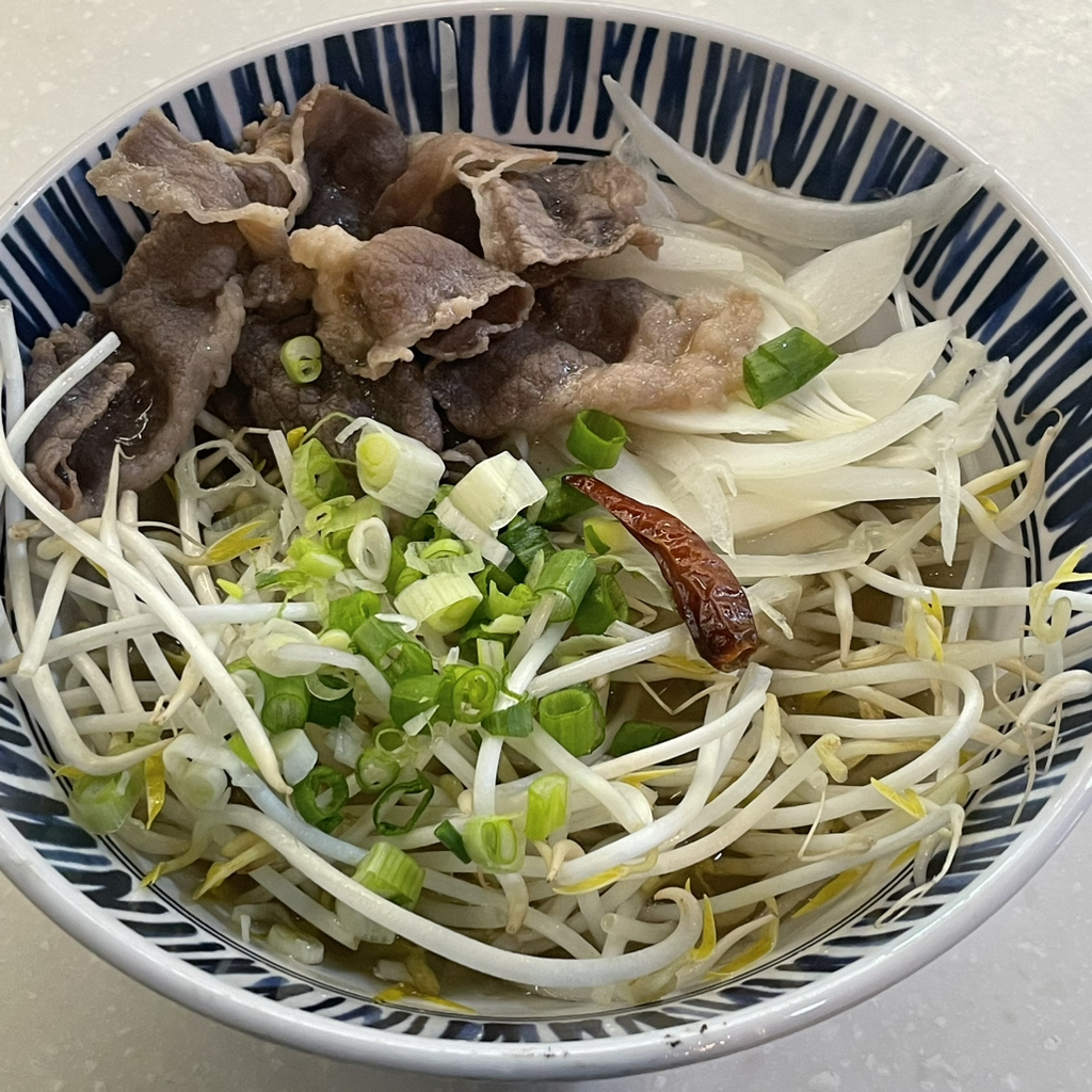 쌀국수 면 미리 불려놓고 육수는 장국으로 만들어서 숙주+차돌+양파+쪽파 올리면 끝