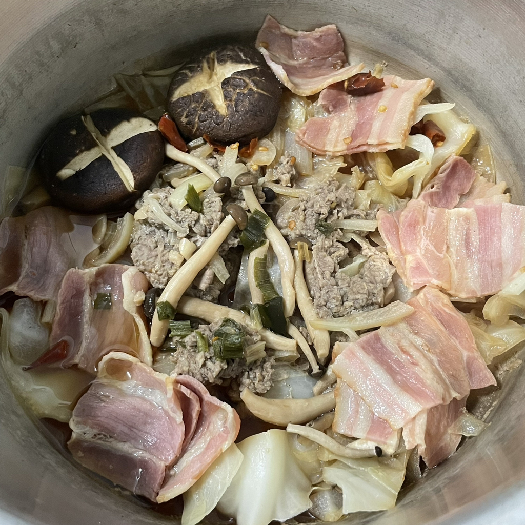 먹을거없을때 간단하고 따뜻한거먹고싶다->양베추+베이컨