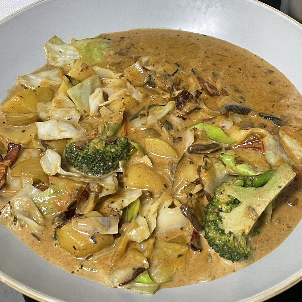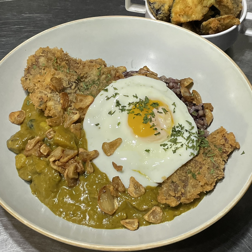 시금치 갈아서 팔락파니르같이 부드러운 카레 만들까 하다가 백세 약간매운맛+가람마살라+강황가루 넣고 매콤한 카레로 만듦