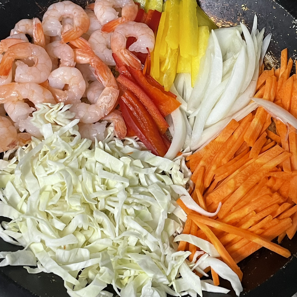 해산물+화이트와인+레몬즙 추가해서 볶아주고
