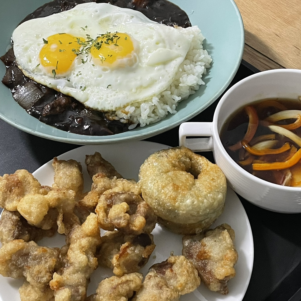 +돼지고기 덩어리로 사놓은걸로 반은 카레에 넣고 반은 얇게 저며서 미니돈까스로 만듦