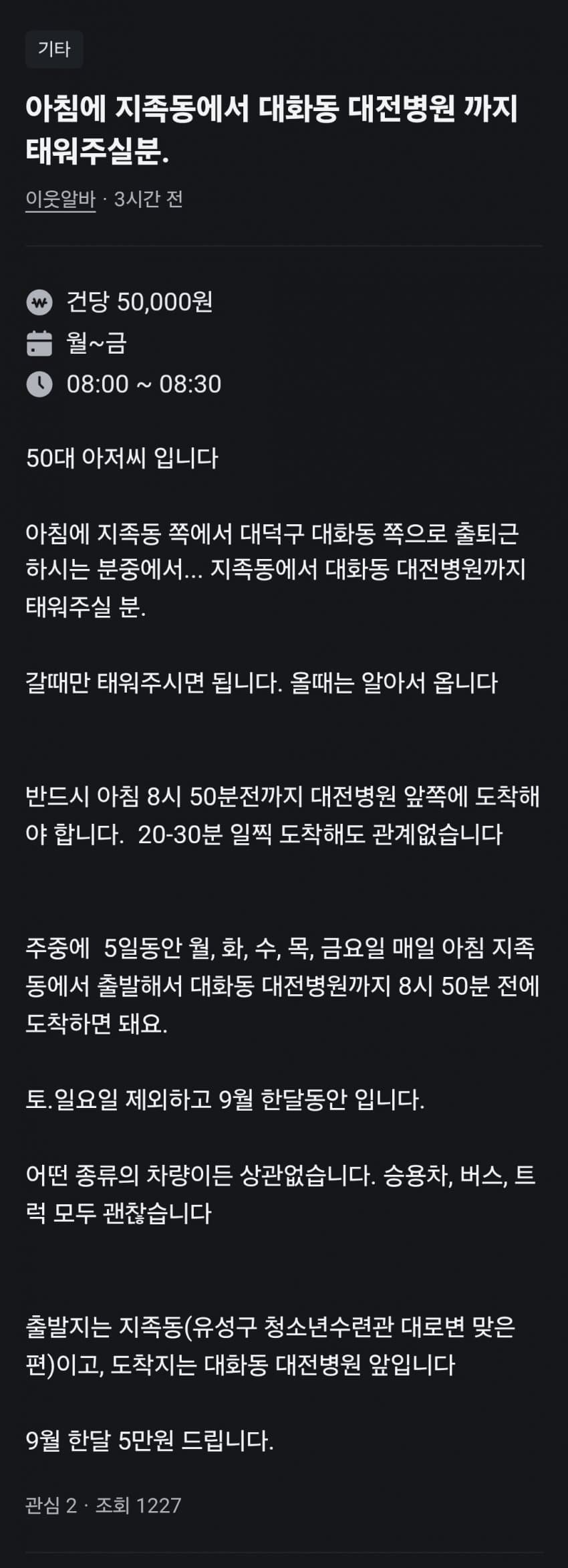 [스크랩] [흥미돋]50대 아재의 당근 알바 구인 작성자아이스맥심라떼|작성시간25.09.06|조회수18,968 목록 댓글 144 글자크기 작게가 글자크기 크게가 다음검색 스크랩 원문 : 도탁스 (DOTAX) 현재 게시글 추가 기능 열기 북마크 공유하기 신고 센터로 신고 댓글 댓글 144 댓글쓰기 답글쓰기 댓글 리스트 작성자포케케 | 작성시간 25.09.07 그냥 대중교통 타세요 작성자메카 땃쥐 | 작성시간 25.09.07 버스타 작성자r=vd:2025로또1등당첨자 | 작성시간 25.09.07 헐 작성자앵재기뤼~ | 작성시간 25.09.07 ㅋㅋㅋㅋㅋㅋㅋㅋㅋ택시타세요.. 작성자끄망 | 작성시간 25.09.12 출퇴근하는길이더라도ㅋㄱㄱ5만원이 말이되냐 저50대남을 감쌰주는건 뭐야 우욱 댓글 전체보기