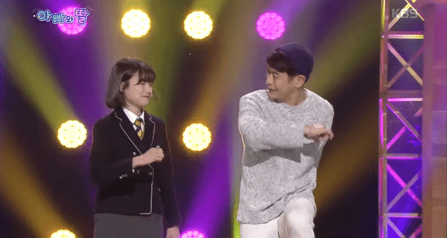 준수랑 같이 아어가 나와서 장기자랑 하는중