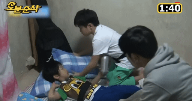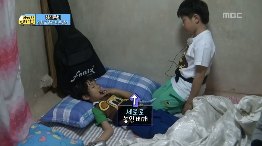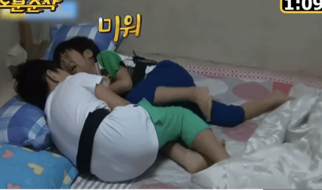준수가 탁수 누울 공간 안주겠다고 떼써서 싸우는중