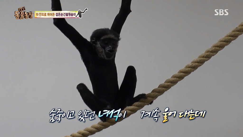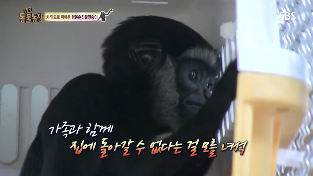 시골의 어느 외진 곳에서 멸종위기종인 검은손긴팔원숭이 한 마리를 발견했단 제보가 들어옴