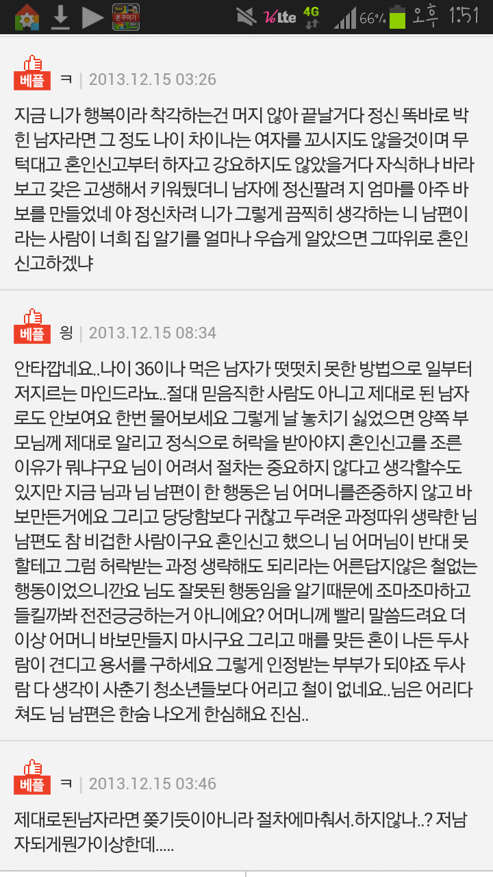 그 이후로도 오빠는 가족관계증명서와 혼인증명서는 자기는 유부남이나 이혼남 절대 아니고 저에대한 애절함을 포기하지 않으시고..여차저차 저도 울고불고싸우고엄청 많은 일이 있었으며그렇게 시간이흘러 ..제가졌네요. 오빠의 진심에 우리엄마에게 죄를 짓는..혼인신고를 하였습니다.처음에는 생일이 지나지않아 만19세라며 못했고2013년 4월 10일 생일직후 하였네요.