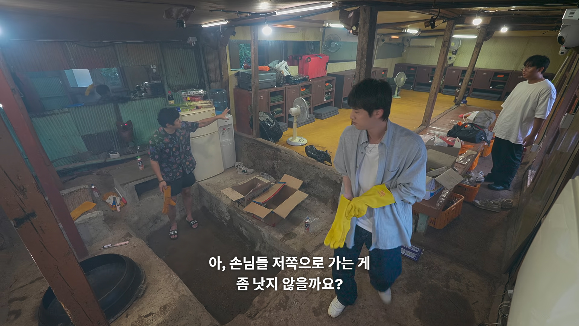 저녁 준비중인 민박집, 건물 안에 환기구가 없음.