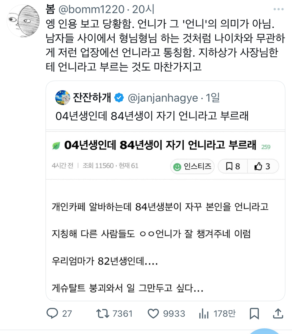 작성시간 25.09.19 언니라고 부를수도 있지 근데 뭐 부르기 싫을수도 있지