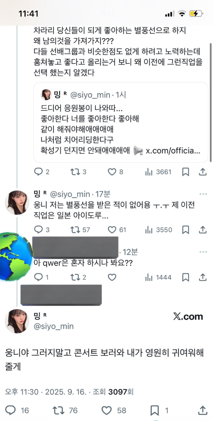 QWER 시연이 직접 저 팬한테 답글 달아서