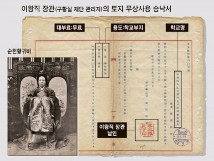 당시 왜놈들이 황실 재산도 멋대로 처분하려 들어서 엄 귀비가 본인 소유였던 토지에 사비로 학교를 세웠음