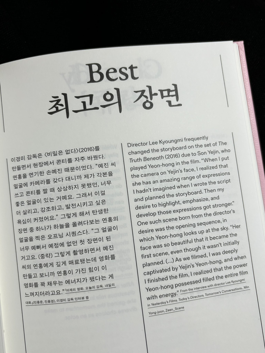 (손예진) 얼굴에 카메라를 갖다대니까 각본을 짜고 콘티를 짤 때 상상하지 못했던 너무 좋은 얼굴이 있어서, 그걸 살리고 강조하고, 발전시키고 싶어서 콘티를 자주 바꿨다고 함