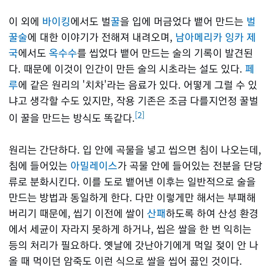 그전까지는 사람이 입으로 씹어서 타액에 의해 발효시킨 술 먹엇다고 함