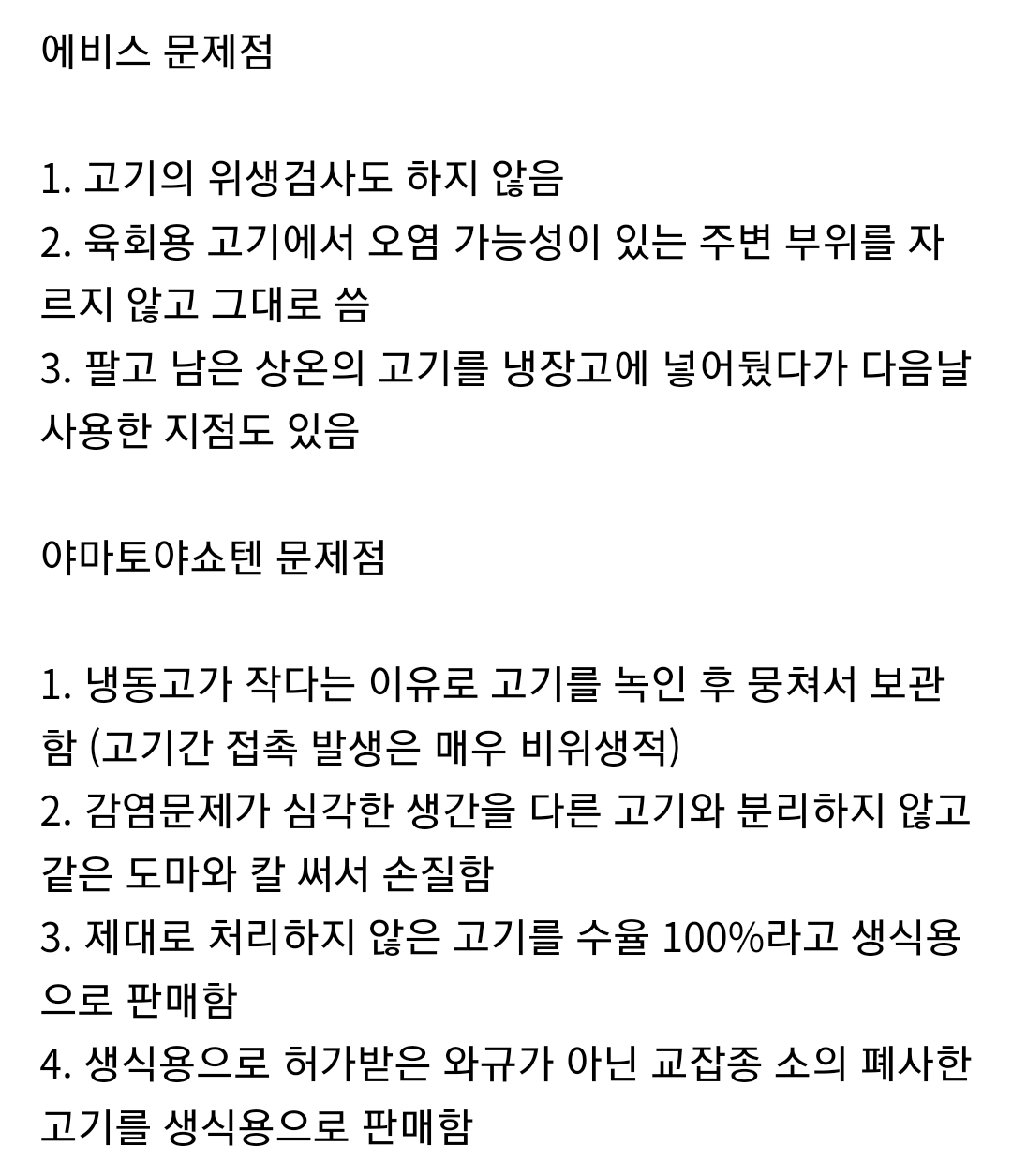 사시미 - 선어회 - 죽은걸 반찬용 선어되기전에 냉동시켰다가 회쳐먹음