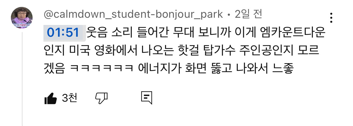 답댓글 작성시간 25.09.23 2분 10초부터가 레전드네 꺄오! 하는거나 애드립하는거나 진짜 옛날 제대로된 음방 보는 느낌 ㅠㅠ