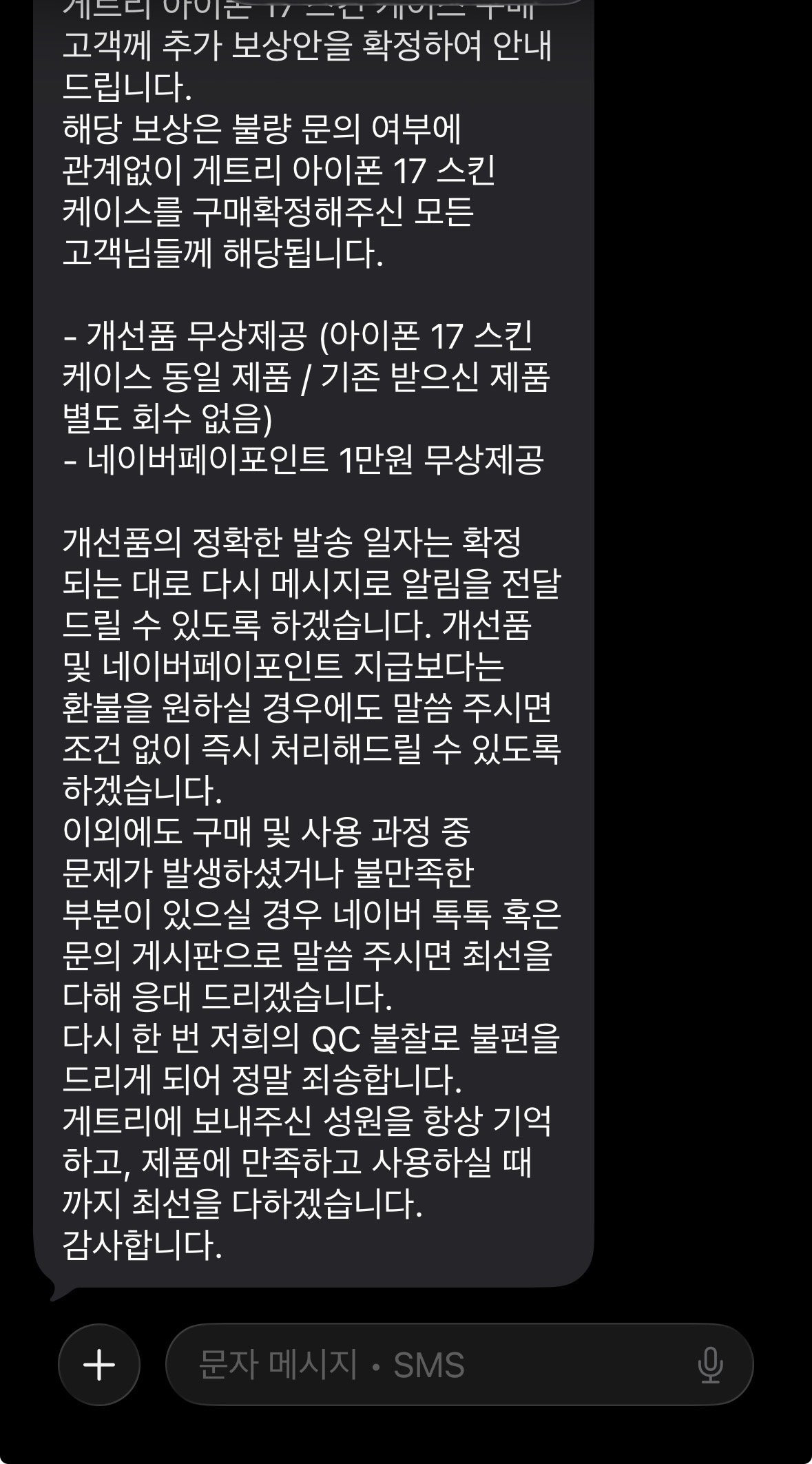 모든 구매고객들에게 개별 문자도 발송함