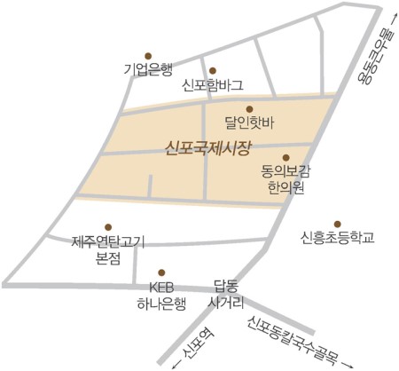 신포국제시장은 19세기 말 인천항 인근 신포동에 있던 생선 가게와 채소 가게들이 시초가 된 인천 최초의 근대적 상설 시장이다. 3300m2의 규모에 약 160여 개의 가게가 입점해 있다.