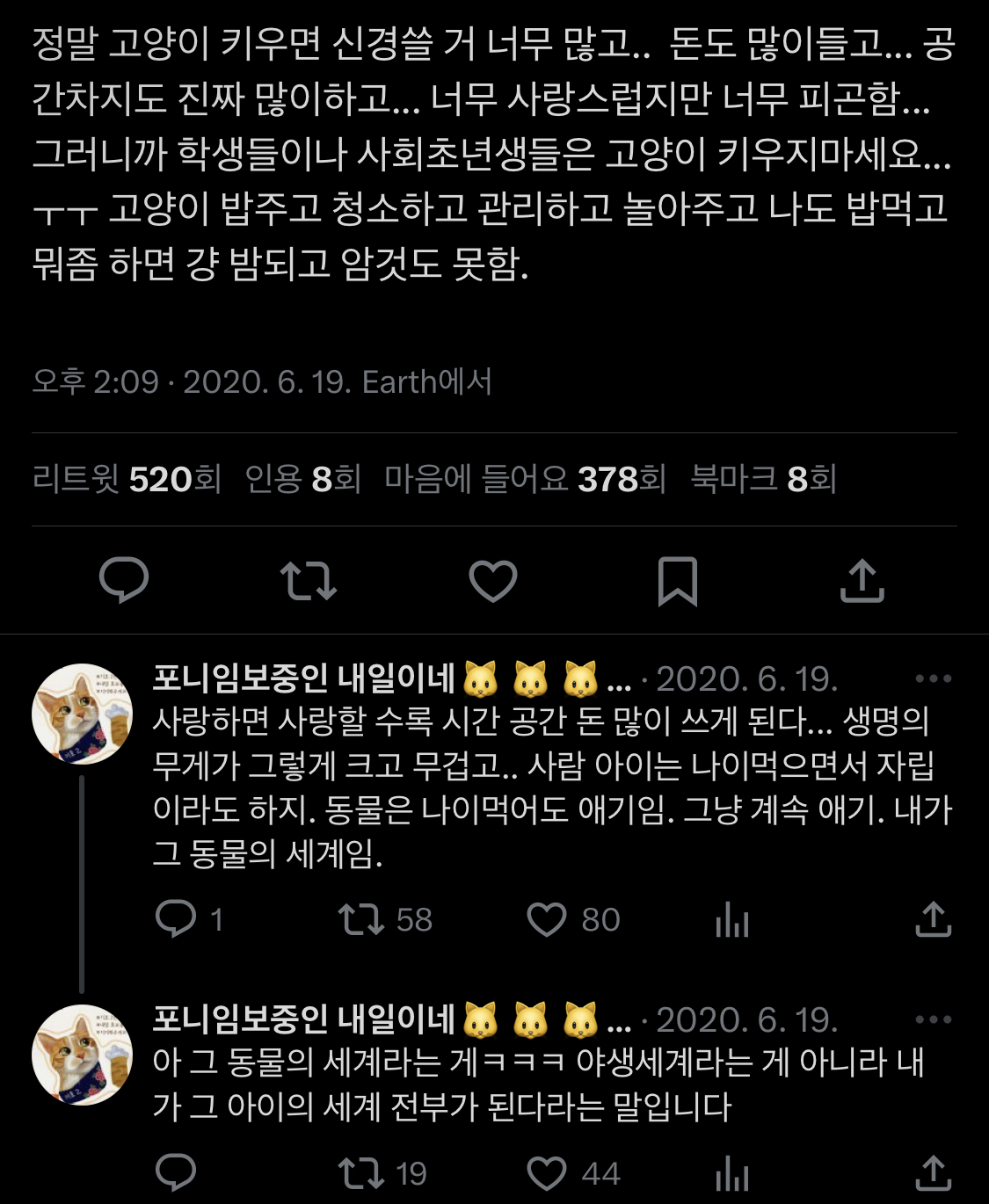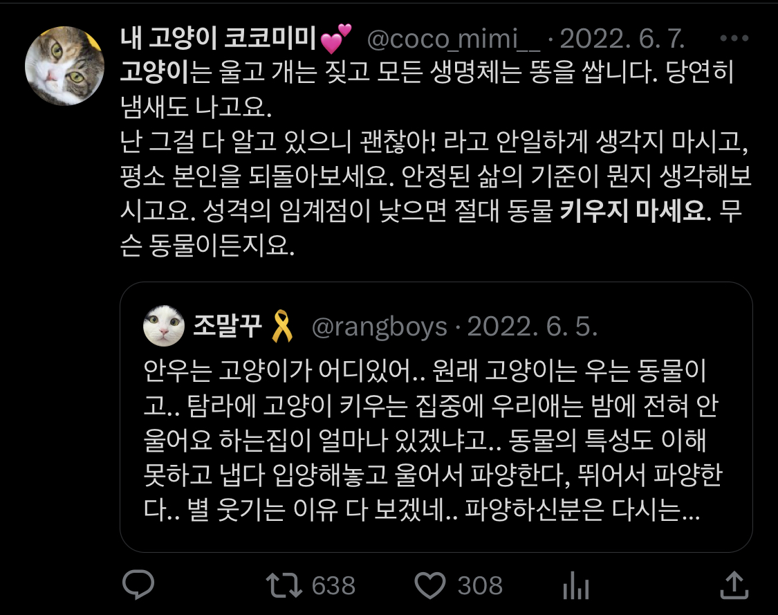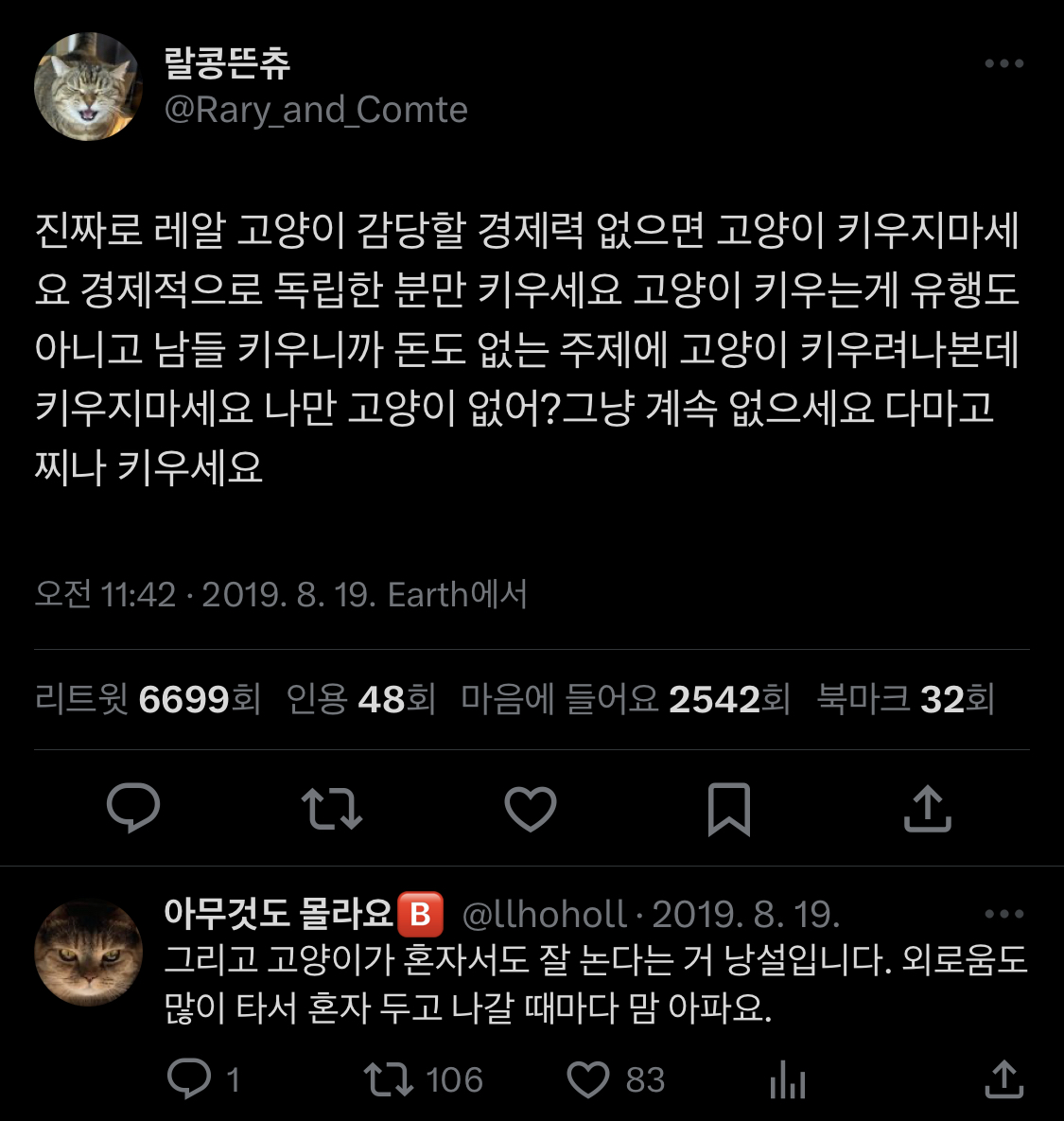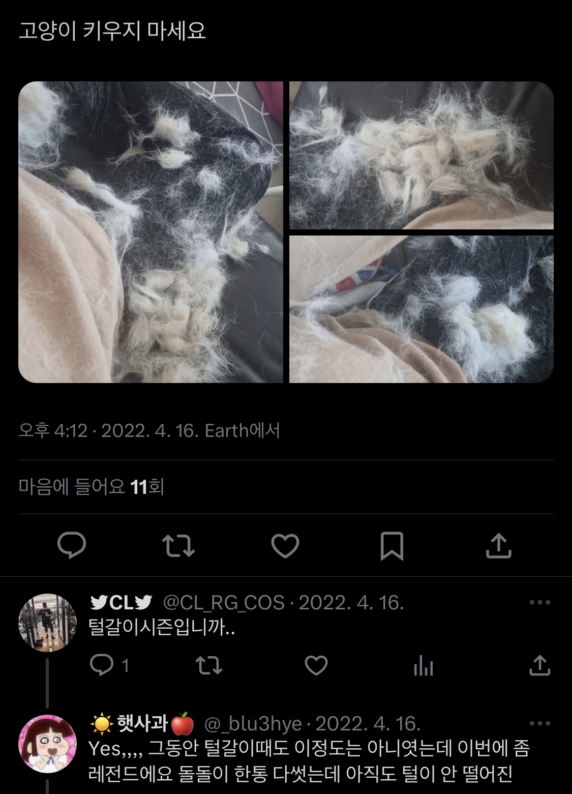 작성자룰루랄라렐라히히 작성시간 25.09.30 나도 집사지만 진짜 책임질 각오로 데려와