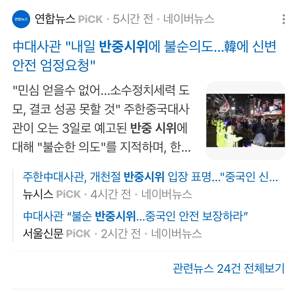 -> 명동 상인 피해 + 한국에 ‘살고’ 있는 중국 대사 모욕 (현재 살고 있는 외국의 원수나 외교 사절을 모욕할 시 법적 처벌 가능) 문제로 제한 하였으나 불법으로 시위함