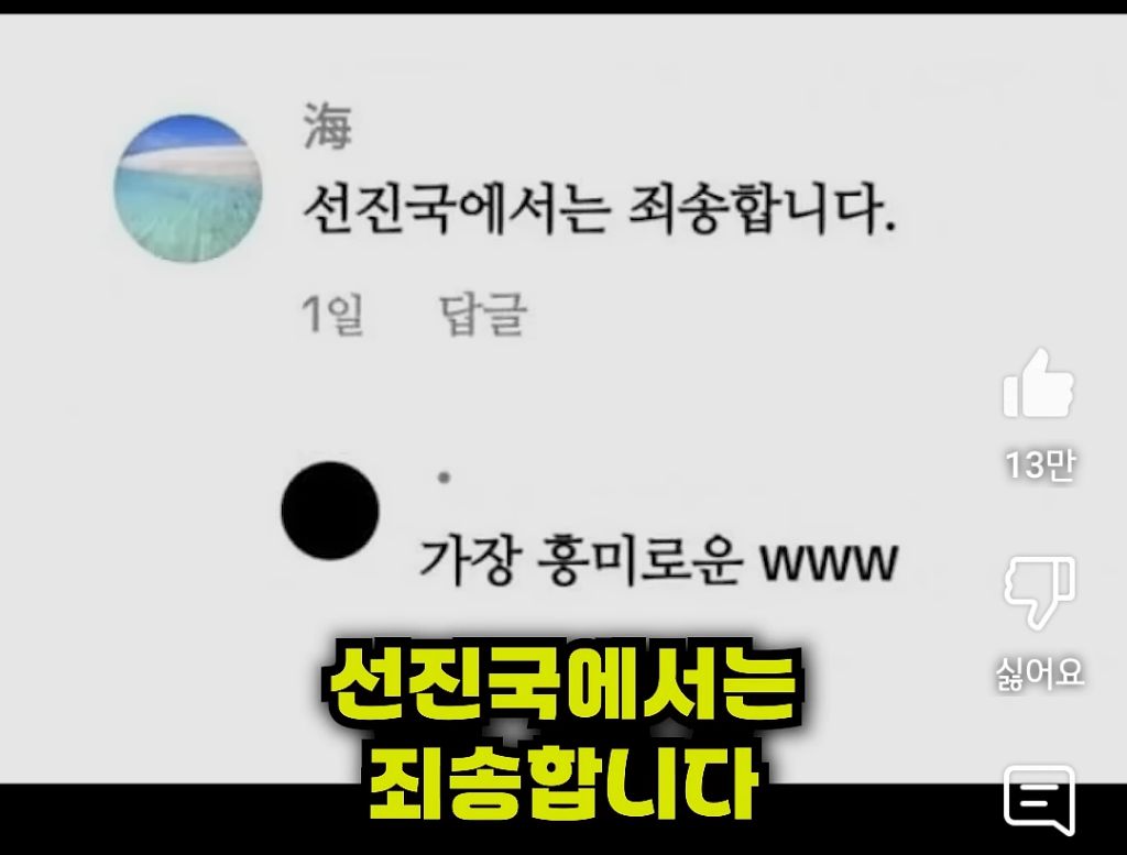 일본인: (공손하게) 선진국에서는 죄송합니다.