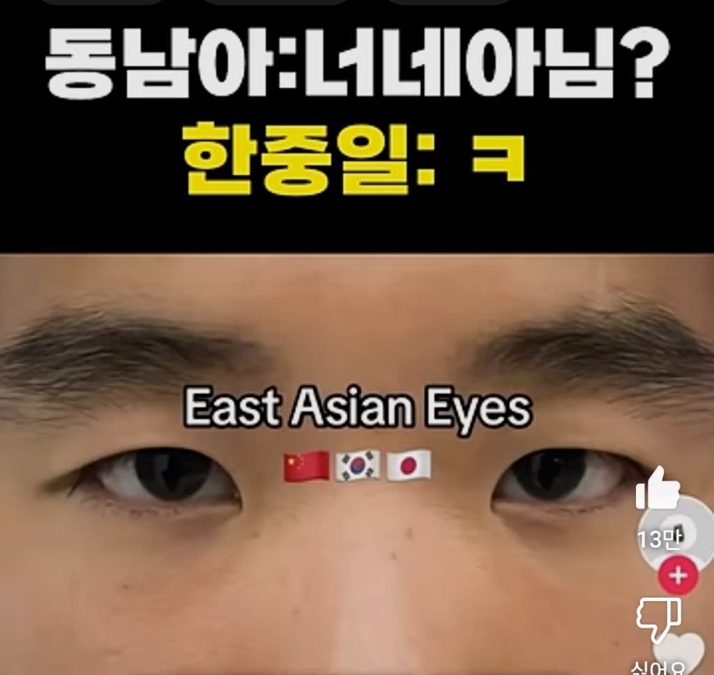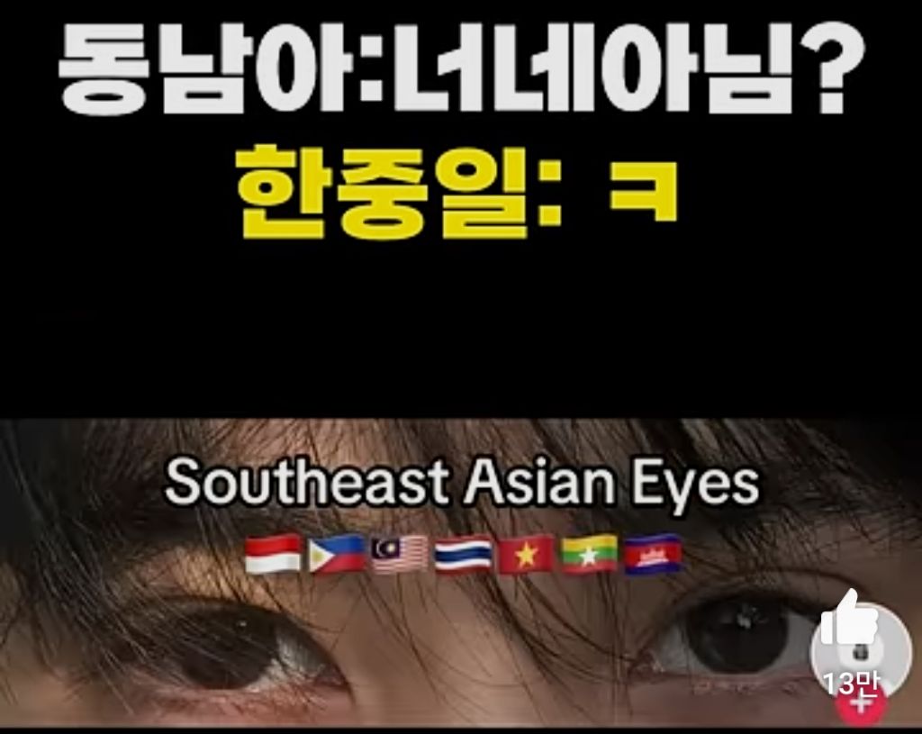 어떤 동남아 유저가 틱톡에 동아시아의 눈 vs 동남아시아의 눈이라는 게시물을 올림