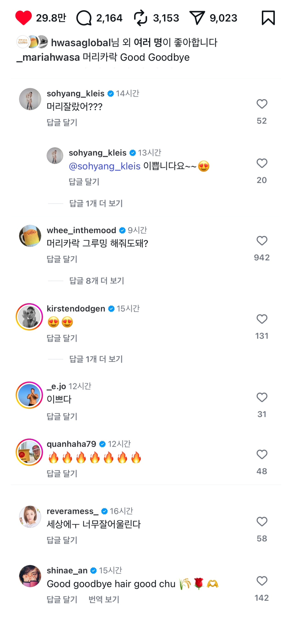[흥미돋]오늘자 인스타에 머리 짧게 자른 모습 공개한 화사 작성자daybyday|작성시간25.10.08|조회수250,589 목록 댓글 327 글자크기 작게가 글자크기 크게가 출처: https://www.instagram.com/p/DPg_RdGgVfo/?igsh=MTB6ZnpuZzA3MmszcA== 다음검색 현재 게시글 추가 기능 열기 북마크 공유하기 신고 센터로 신고 댓글 댓글 327 댓글쓰기 답글쓰기 댓글 리스트 작성자수지여친 | 작성시간 25.10.17 화사는 역시 단발이야 작성자놀러가자물놀이 | 작성시간 25.10.18 와 진짜 잘어울린다 ... 작성자꽃 피고 봄이 오면 넌 내 곁에 올까 | 작성시간 25.10.18 감탄하면서 스크롤 내렸네.. 넘 잘어울리고 예쁘다 작성자트러플감자칩 | 작성시간 25.10.18 이쁘다 작성자몽 이 | 작성시간 25.11.21 와 대박 댓글 전체보기