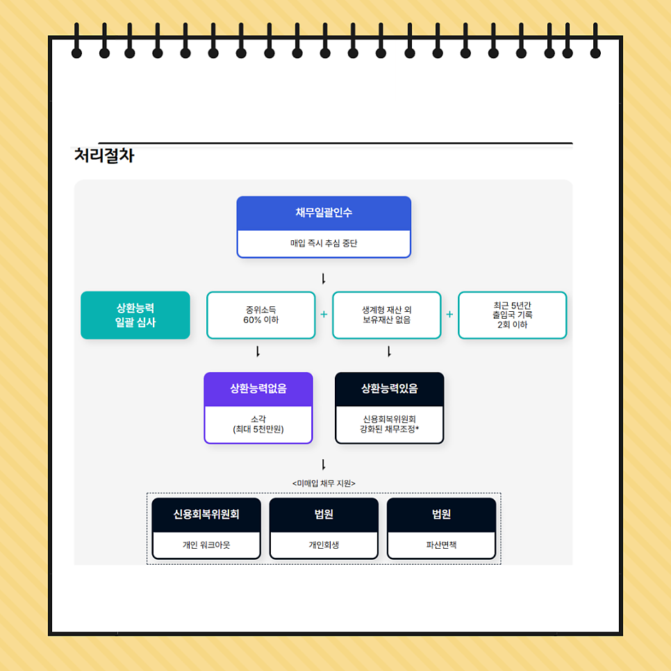 ✅️핵심 내용: 금융권에서 7년 이상 장기 연체된 무담보 채권(원금 합계 5천만 원 이하)을 정부 가 일팔 매입 ➡️