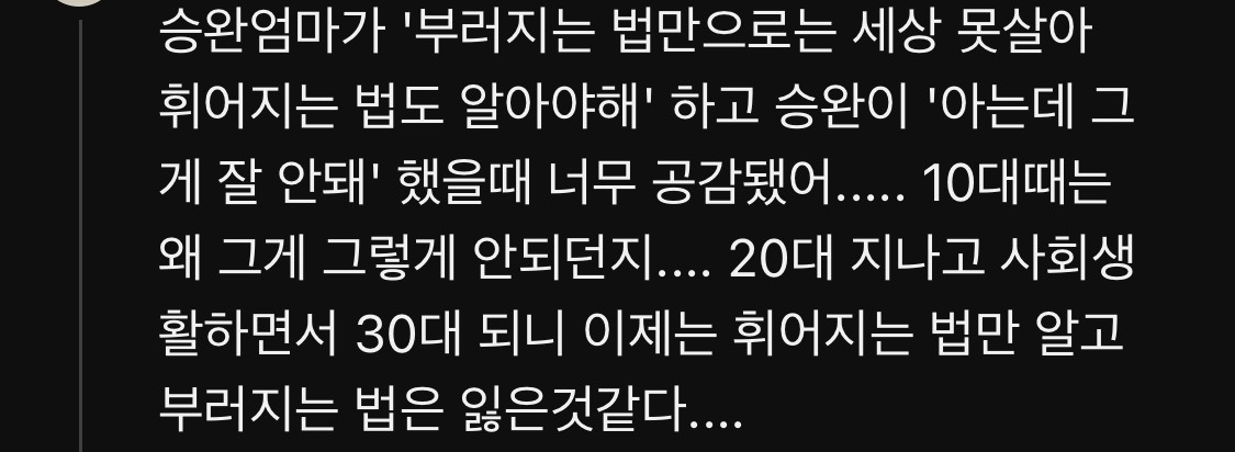 작성자매일 눈뜰 때마다 설레이는 아침을 작성시간 25.10.14 아니 승완이 어머님 진짜 멋있으시다.....