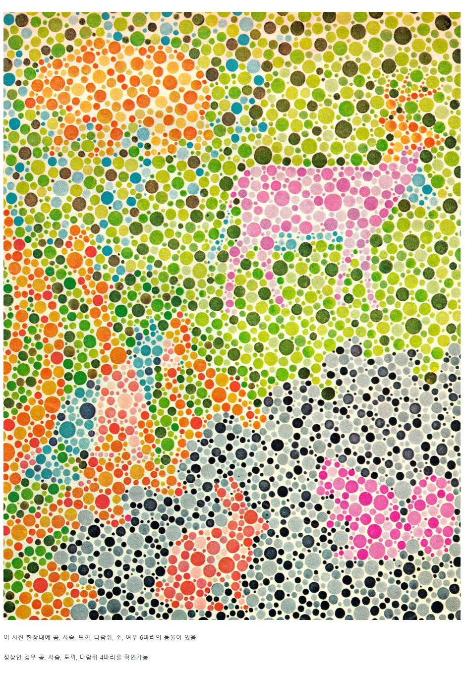 작성자깐쬬 작성시간 25.10.14 난 적록색약인데 소 여우 토끼만 보여ㅋㅋㅋ 색약도 종류가 달라서 그런가