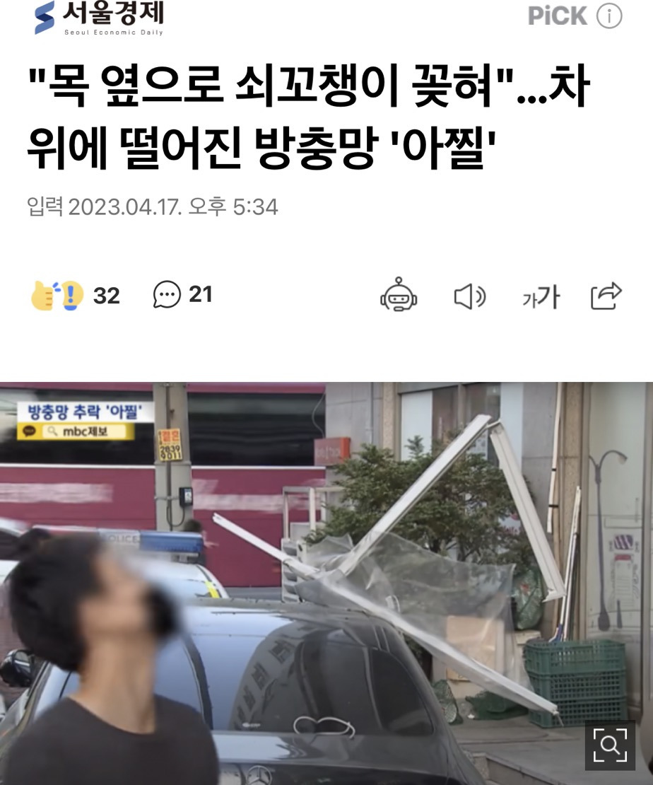 방충망만 떨어져서 차 파손되거나 사람 다치는 경우도 많음