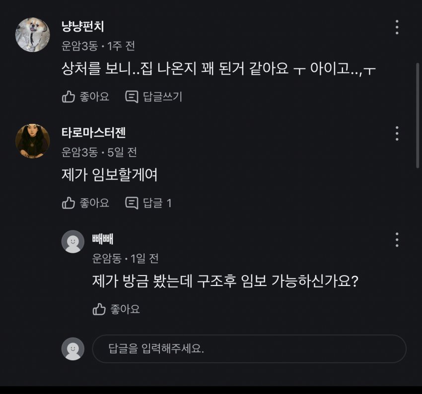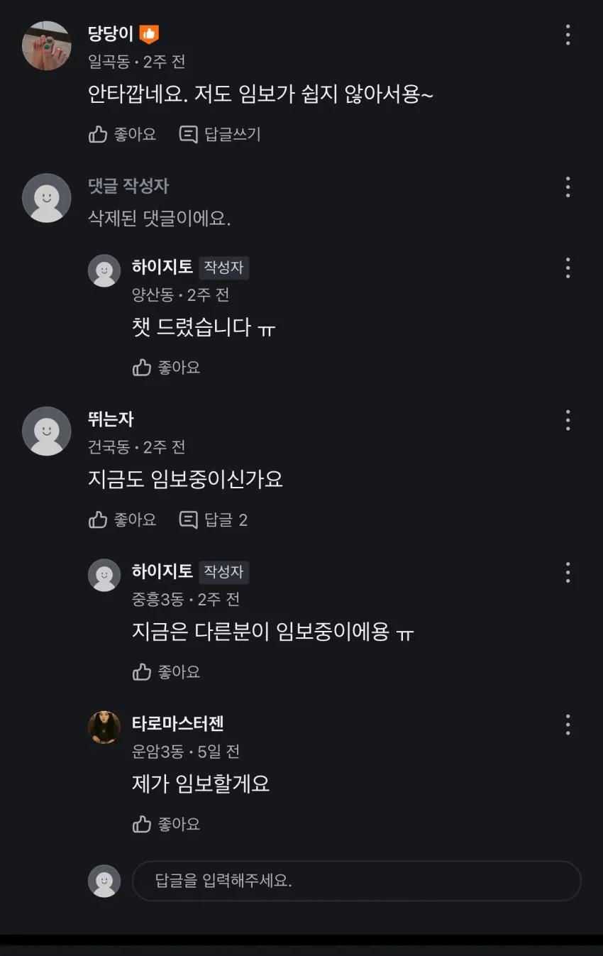 몇시간 전에도 임보 요청 댓글을 달았으며