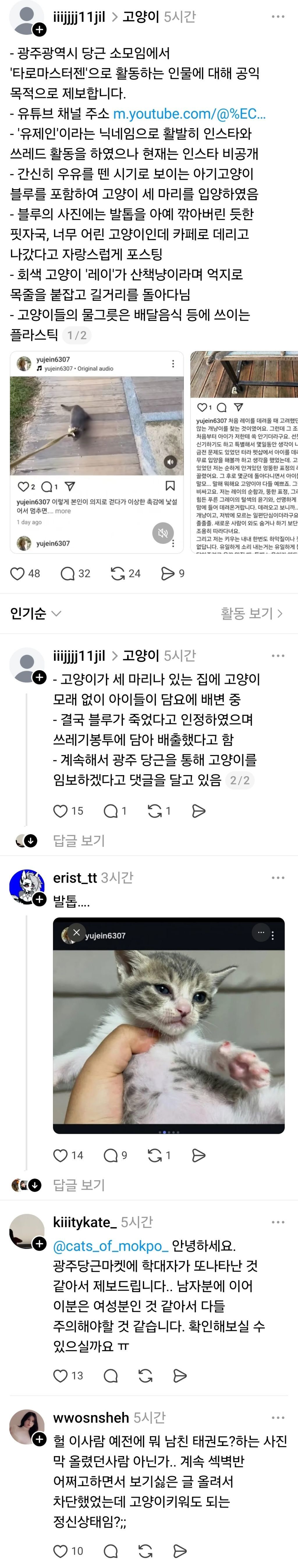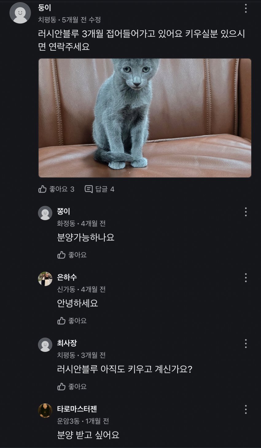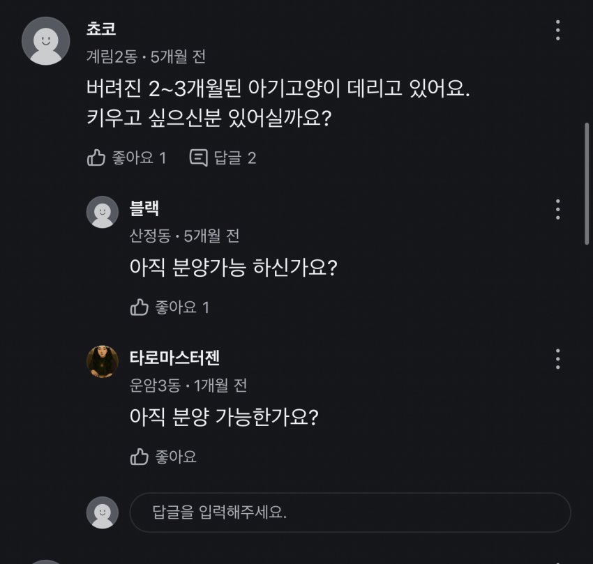 품종묘 + 어린 고양이 임보나 분양에만 댓글 다는 중