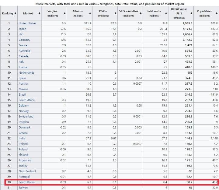 + 참고로 2020년 기준, 한국 대중음악시장은 세계 6위임