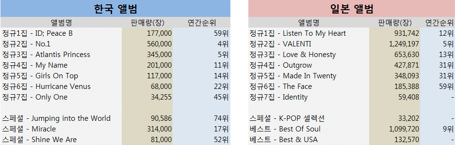* 2000년 ~ 2010년 일본 여가수 파워랭킹 - 일경엔터