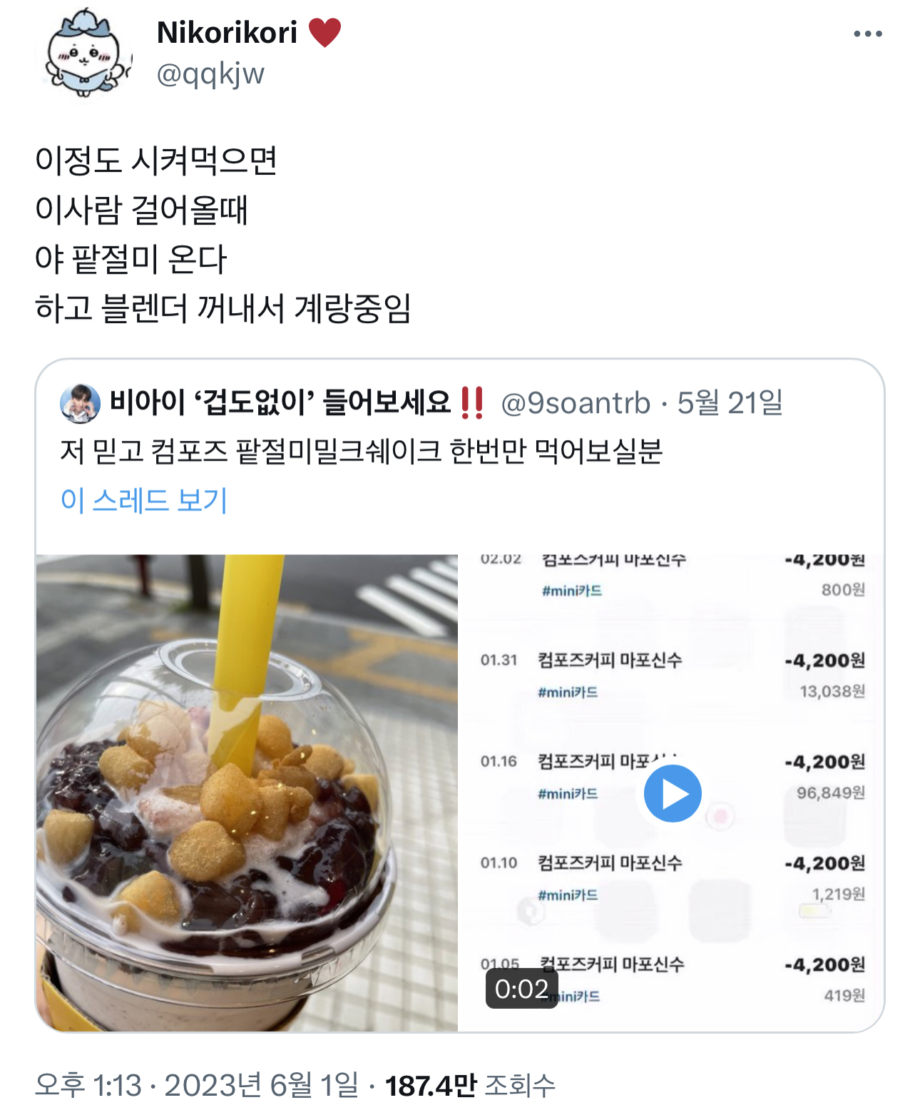 작성자헤이 걸 작성시간 25.10.15 ㅋㅋㅋㅋ난ㄴ 항상 2잔시켰었는데...1잔만시키니까 오늘은 왜..1잔이에요? 물어보더라ㅋㅋㅋㅋㅋㅋㅋㅋㅋㅋㅋ
