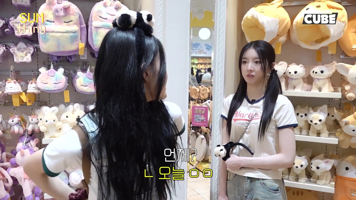 라잇썸 주현이랑 상아가 놀이공원을 갔는데 머리띠 및 가방을 사러 간 상황